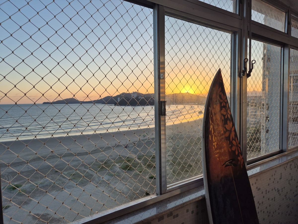 Przytulny apartament w ekskluzywnej dzielnicy São Vicente-Itarare na Praia dos Milionários, w pełni wyposażony, z szybkim Wi-Fi, telewizorem Smart TV, pościelą i ręcznikami, fantastycznym widokiem na morze, na piasku, na wysokim piętrze, piękny zachód słońca, panoramiczny widok na zatokę i most wiszący, w pobliżu różnych sklepów, takich jak restauracje, bary, sklepy spożywcze, supermarkety, piekarnia, pralnia, kioski itp., nieokreślone miejsce parkingowe w zależności od dostępności w danym dniu. Wyjątkowe doświadczenie!!!
