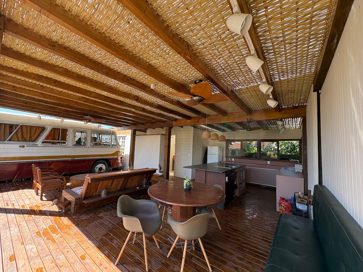 A Mosai Co Bus House é um espaço único em Floripa: um ônibus clássico transformado em uma casa de praia confortável, criativa e perfeita para casais ou famílias com pets, a poucos passos do mar, na melhor região do Campeche. A praia aqui é especial. Água transparente, areia clara e uma ilha paradisíaca logo em frente. Surpreenda se com uma das acomodações mais originais da Ilha. Nossa arquitetura é aconchegante, espaçosa e com muito estilo, em uma localização excepcional. Sejam muito bem vindos!