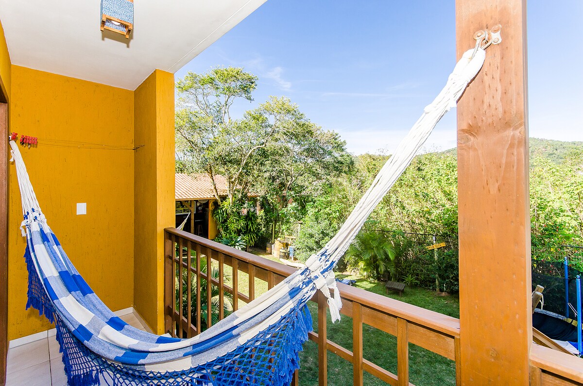 Przestronny dom 400 metrów od plaży i 100 metrów od centrum. Maksymalna pojemność dla 6 osób. Przytulny, wygodny i magiczny. Z tarasu roztacza się wspaniały widok na lagunę Ibiraquera. Punkt widokowy na najwyższym punkcie wzgórza z widokiem na morze. Główna sypialnia z łazienką i łóżkiem małżeńskim, 1 sypialnia z 5 łóżkami pojedynczymi i łazienką zewnętrzną. Antresola z 1 podwójnym łóżkiem. Salon i kuchnia. Prysznic na zewnątrz i grill. Zewnętrzny taras. Prywatny parking dla dwóch samochodów. Dobre i bezpieczne Wi-Fi.