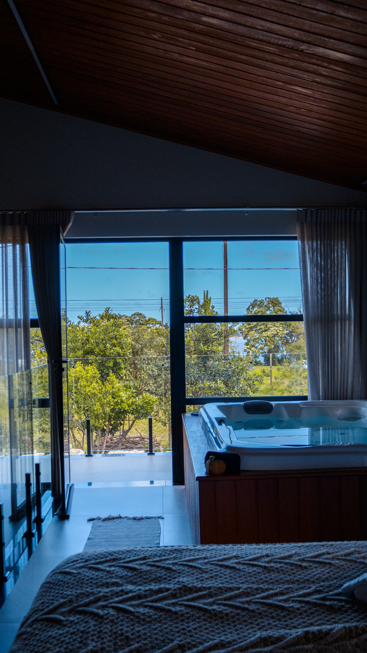 Nasz ośrodek wypoczynkowy znajduje się wysoko w górach, w środku bujnego lasu atlantyckiego. Położony w ekskluzywnej, zamkniętej społeczności, Casa do Céu Inn ma tylko dwie jednostki, oferując prywatność, bezpieczeństwo i zapierający dech w piersiach widok na lagunę. Jesteśmy strategicznie położeni wśród najbardziej znanych plaż Garopaba: krótkim spacerem wzdłuż szlaku można dotrzeć do Praia da Silveira; w zaledwie pięć minut samochodem można znaleźć piękne plaże Ferrugem i Garopaba.