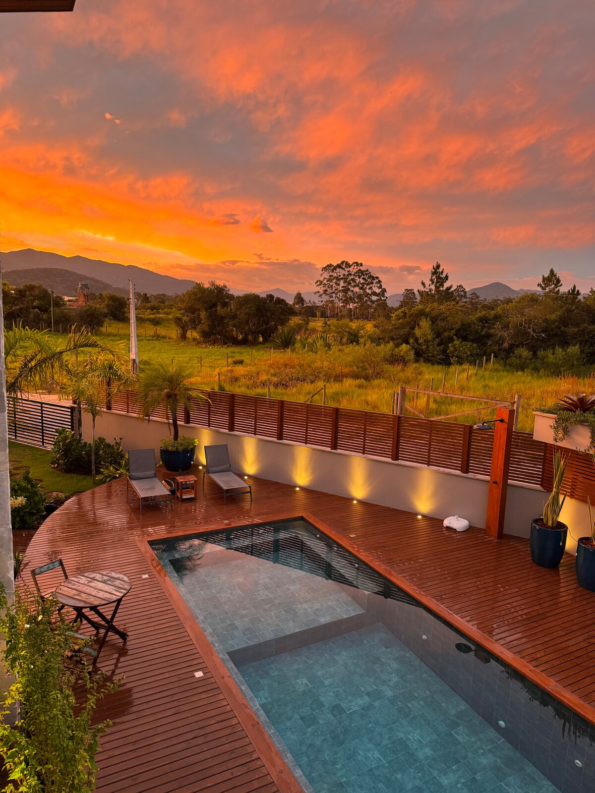 Nosso espaço é pensado para nossos hóspedes. Possuimos um espaço com 1500m², local seguro, casa completa e equipada, mesa de sinuca, piscina aquecida, área de jacuzzi de hidromassagem, acesso à lagoa privativo, prancha de standup paddle, caiaque etc. Nossa localização é privilegiada por belezas naturais, estamos localizados a cerca de 2km da Praia do Rosa, mas além desta linda praia, há outras lindas praias também na região, como Praia do Ouvidor, Praia da Barra de Ibiraquera, Praia do Luz, Etc…