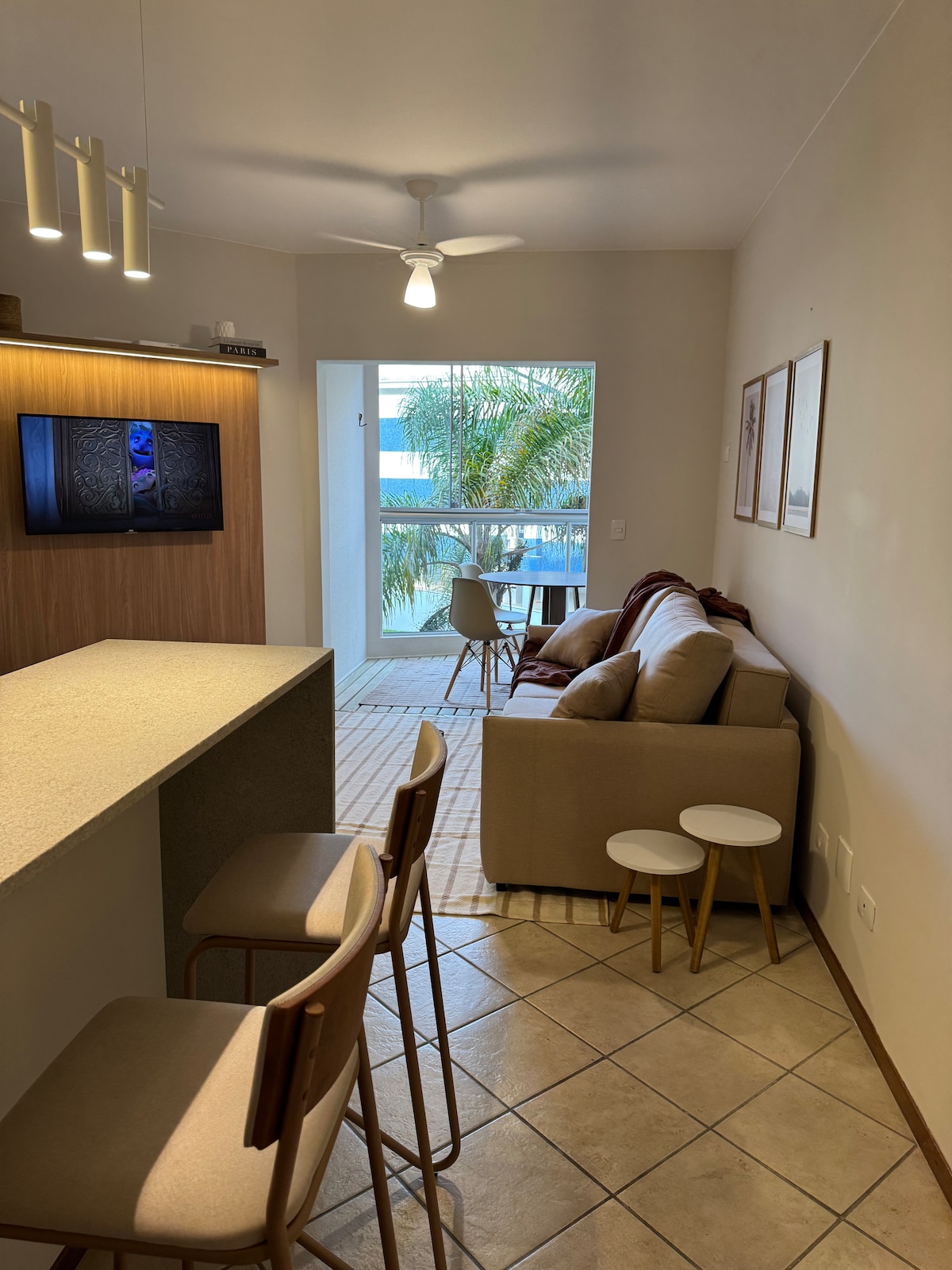 Apartament położony na plaży Ingleses, tuż przy morzu, na piasku i z pięknym widokiem. Elegancko urządzony apartament, wyposażony we wszystko, czego potrzebujesz, aby cieszyć się wakacjami w jednym z najlepszych kurortów nadmorskich Florianópolis. Są tu dwie sypialnie, jedna z nich z łazienką, łazienka dla gości, zintegrowana jadalnia i salon, a na balkonie grill. W pobliżu centrum Ingleses i łatwy dostęp do supermarketu, restauracji i sklepów. Apartament może pomieścić do 5 osób, za 4 osoby pobierana jest dodatkowa opłata.