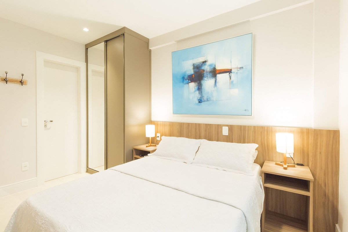 Witaj w Búzios! Apartament w ekskluzywnym osiedlu z prywatnym dostępem do plaży Rasa/Manguinhos. 🏖 Sala, sypialnia i balkon z widokiem na morze! Oprócz klimatyzacji, wyposażonej kuchni, telewizora SmartTV, szybkiego Wi-Fi, grilla i części wspólnych apartamentowca, basenu, sauny, siłowni i prywatnego parkingu. 10 minut jazdy samochodem do Porto da Barra i 15 minut jazdy samochodem do Rua das Pedras (bez korków) Idealne dla tych, którzy chcą odpocząć i dobrze się bawić w Búzios!
