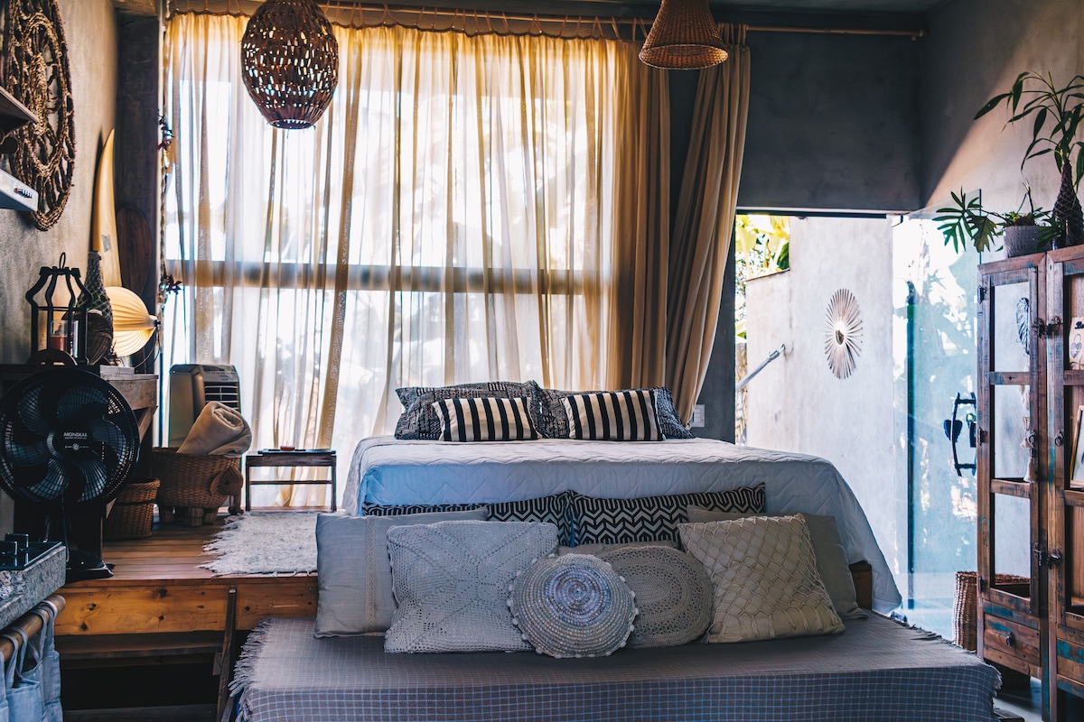 Niesamowicie urocza Casinha znajduje się w Lesie Atlantyckim. Możemy z niego obserwować ptaki wszystkich gatunków, a tukany i wiewiórki to coś wyjątkowego. Dom znajduje się na szczycie lasu Itamambuca i jest zawsze chłodny. Mamy klimatyzację. Woda pochodzi prosto z lasu i jest bardzo dobra do picia i kąpieli. Casinha jest całkowicie ogrodzona, więc Twój zwierzak może bezpiecznie biegać na wolności. Organizujemy wyprawy, lekcje surfingu i sesje w najlepszych warunkach.