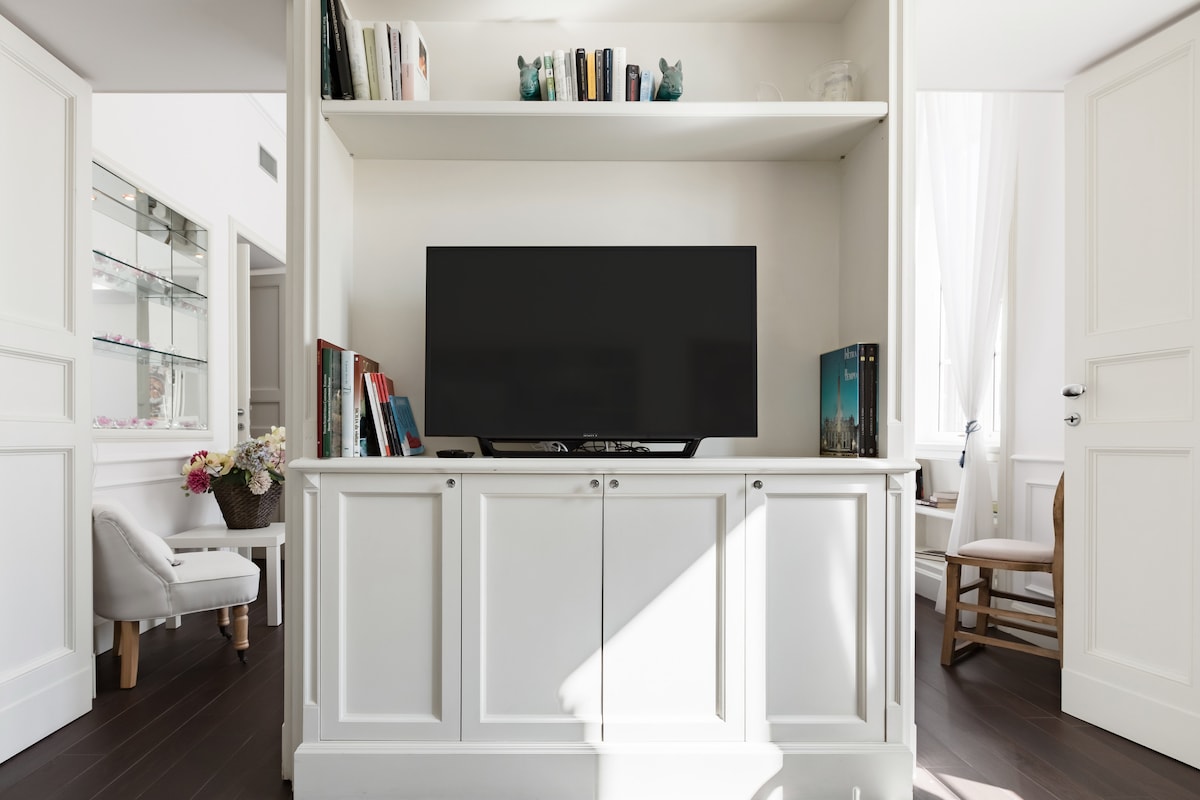 L’appartamento è situato nella centralissima zona “Prati” ed è composto da una grande cucina ben attrezzata, da un soggiorno dove si trova un comodo divano letto ad una piazza e mezzo, da una camera con letto matrimoniale e da un grande bagno. A beautiful apartment perfectly situated in the very heart of Rome. Comfy living room with a sofa bed, fully-equipped kitchen, double bedroom, large bathroom.