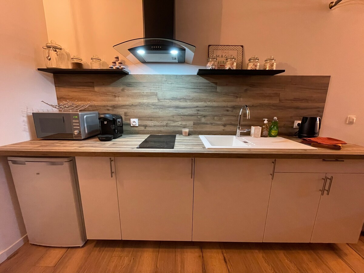 Urocze studio z pokojem na zewnątrz w spokojnej okolicy, idealne na wakacje lub wyjazdy we dwoje lub z rodziną! Położone w spokojnej okolicy, zaledwie 14 km od paryskiego Disneylandu. Możliwe samodzielne wejście. Wspólny parking wewnętrzny i możliwość parkowania na zewnątrz. Najlepiej jest przyjechać do nas samochodem.