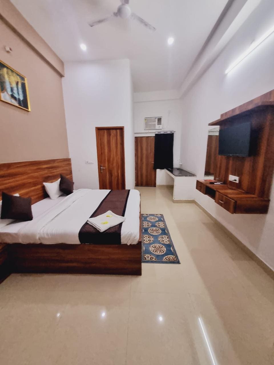 Welcome to SR Palace Vrindavan! Our Deluxe Room offers a clean, comfortable stay with AC, WiFi, TV, and attached bathroom. Located in a peaceful area near Prem Mandir and Banke Bihari Temple, it is ideal for couples, families, and devotees. Enjoy a budget-friendly stay with warm hospitality and easy access to major attractions.