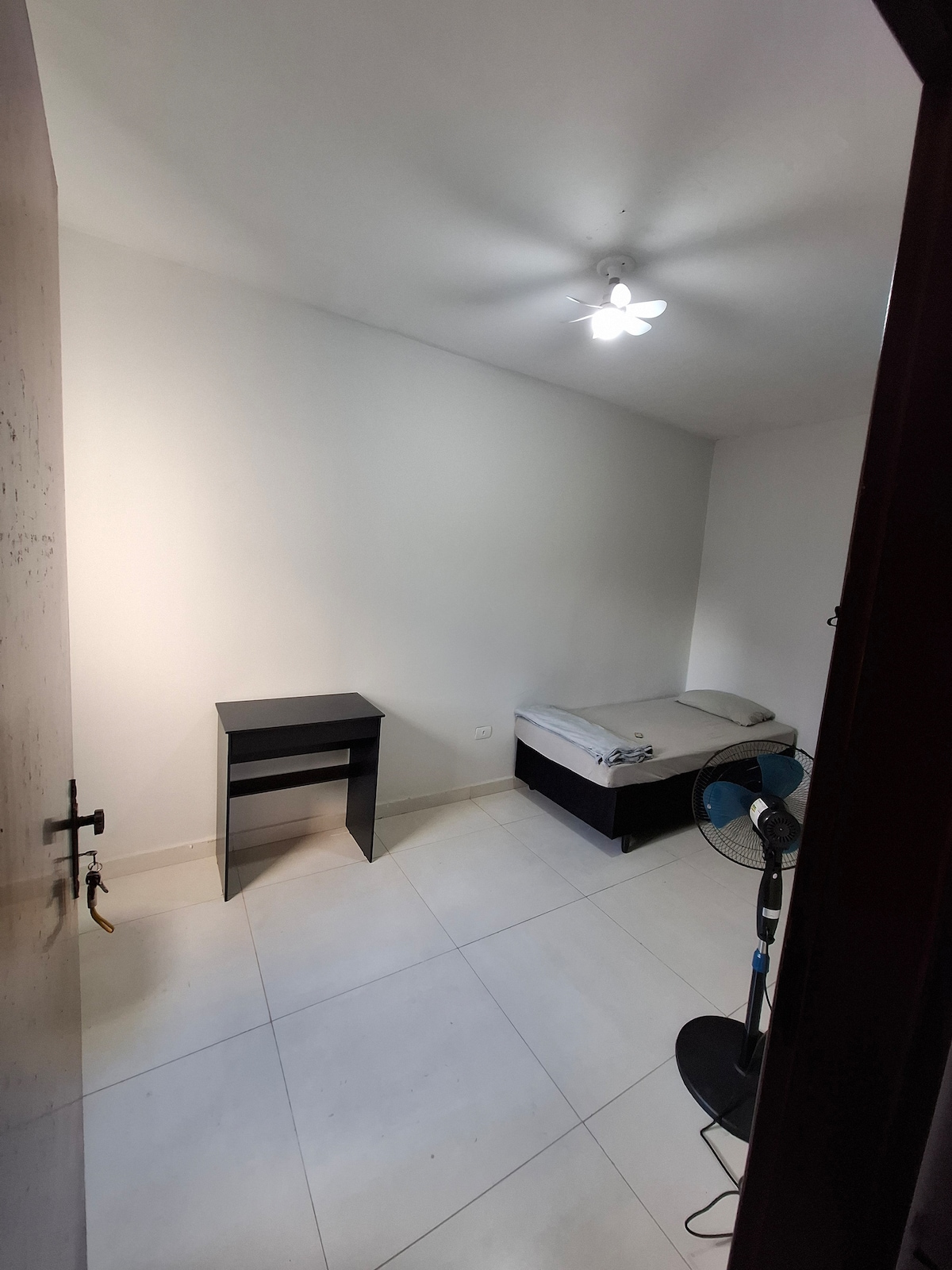 - Sobrado Geminado w zamkniętym kondominium dla Twojego bezpieczeństwa, położone w dzielnicy Vila Luso w Presidente Prudente; - Pomieści do 4 osób, jeden pokój z podwójnym łóżkiem, a drugi z łóżkiem podwójnym; - Znajduje się zaledwie 5 minut jazdy od Presidente Prudente Center; - Szeregowiec o powierzchni ponad 50 m², w bardzo cichym i przyjemnym miejscu, bezpieczny, z salonem, kuchnią, podwórkiem i na drugim piętrze, dwiema sypialniami i łazienką; - Parking na 1 samochód i Wi-Fi wliczone w cenę