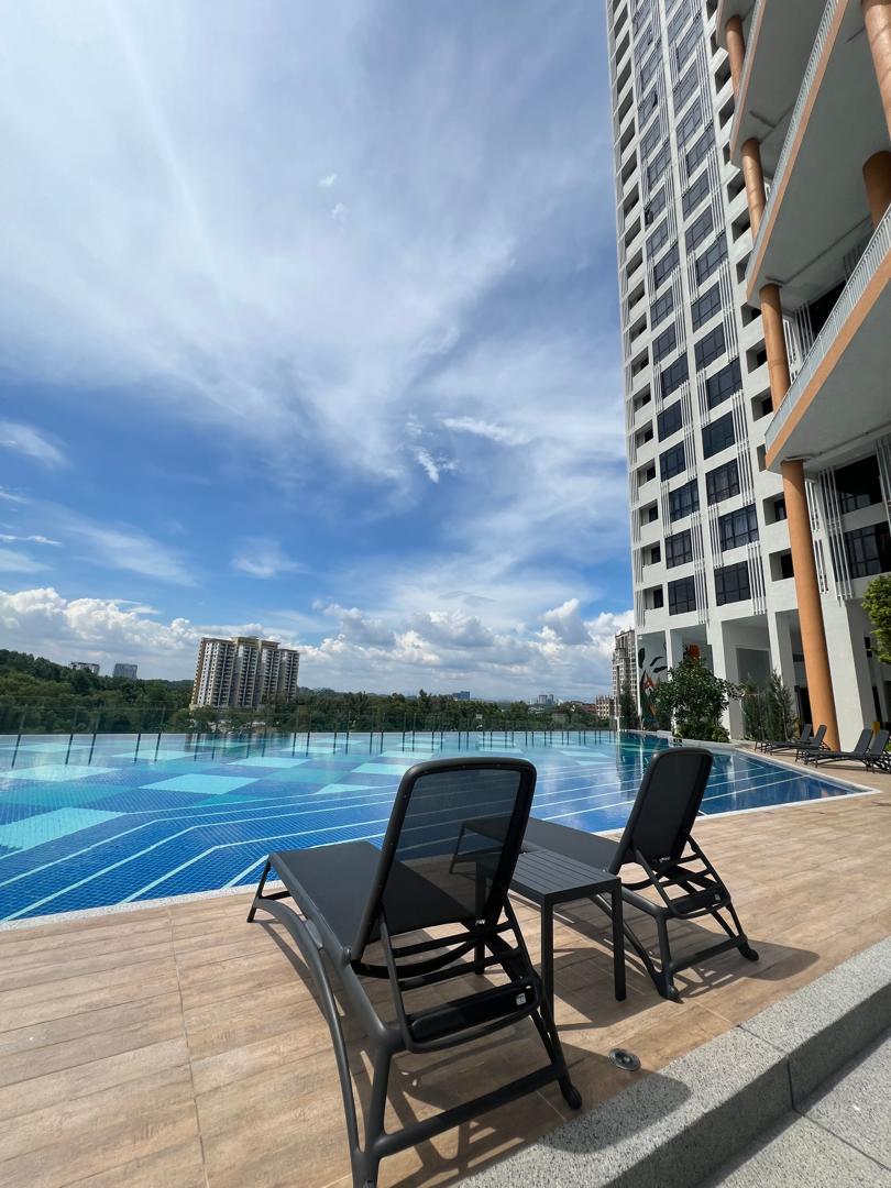 Explore our cozy studio, which can accommodate 2 to 3 people with a queen bed and a sofa bed. Only a 15-minute drive from KLIA T1/T2, the place is surrounded by many restaurants, fast food branches, groceries, and laundry shops, all within walking distance. Savor all the amenities, including the kids’ playground, BBQ area, gym, and swimming pool, with 24/7 security. * Unavailable drop your luggage before check in hours.Due to building designed, need to walk 10 steps staircase to get elevator.