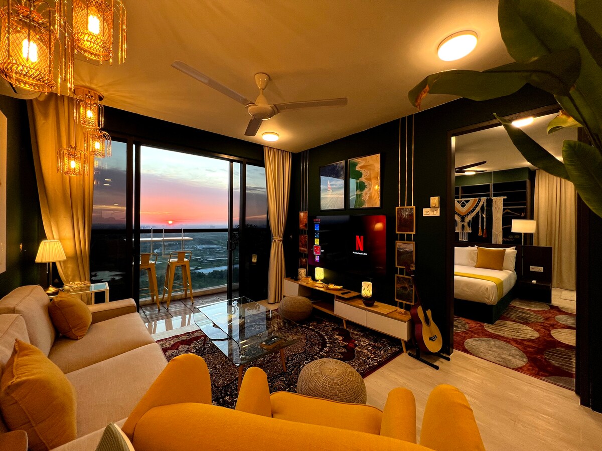 Nasz stylowy, ekologiczny apartament z 1 sypialnią i widokiem na ogród w Kanvas SOHO jest idealny dla par, na weekendowe wypady lub na czas przesiadki. Zaledwie 25 km od KLIA/KLIA2 i w odległości spaceru od Tapak Food Truck, D'Pulze Mall, Burger King, KK Mart, kawiarni i innych. 🛏️ Wygodne łóżko typu queen i rozkładana sofa 🌿 Piękny widok na Putrajaya 📶 Szybkie Wi-Fi 🎬 Netflix 🏊♀️ Basen bez krawędzi Dostęp do🌇 sky lounge i siłowni 🅿️ Bezpłatny parking 🚗 Łatwy dostęp do Grab i autostrady Ciesz się relaksującym pobytem z nowoczesnym komfortem, naturą i wygodą miasta.