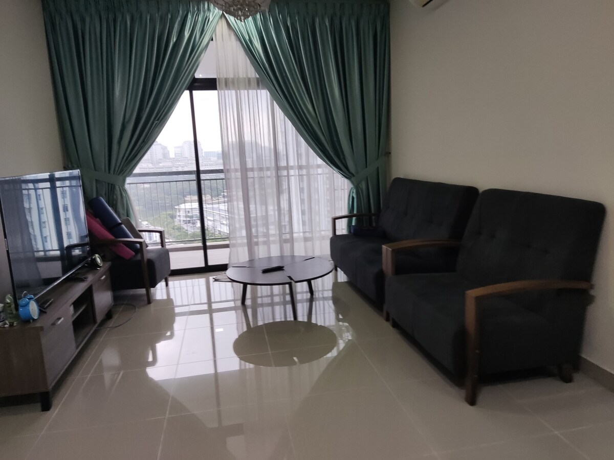 Cozy 3BR stays at Tamara Residence, Presint 8. Enjoy side views of the lake and greenery from the balcony. Sleeps 4 + 2 with sofa bed for extra comfort. Complete with WiFi, Smart TV, full kitchen, airconds in the living hall and master bedroom, and self check-in. Located near Ayer8, Alamanda, IOI City Mall & government offices. Condo facilities include pool, gym & free parking. Perfect for families and weekend stays. Your well-connected home in the heart of Putrajaya.