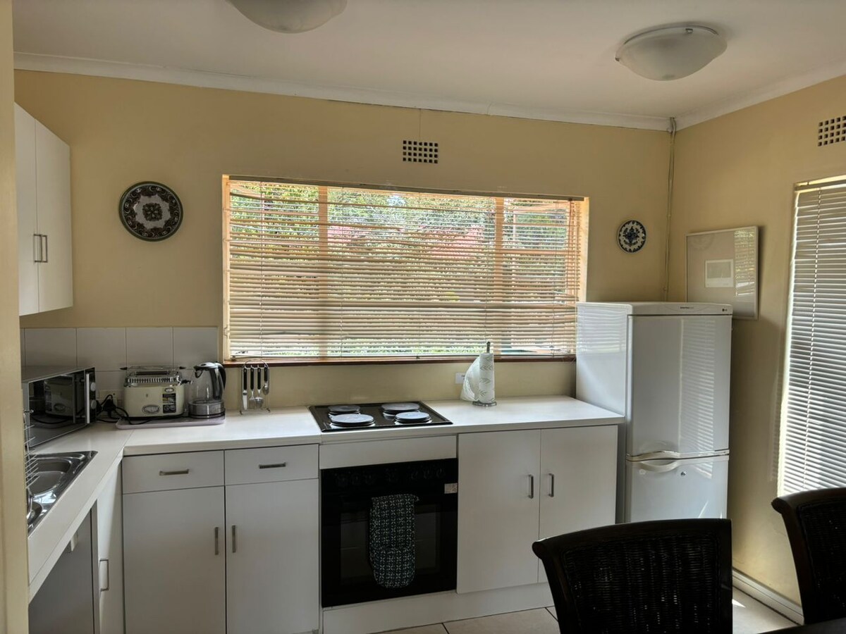 Spokojne miejsce na pobyt w otoczeniu bujnego ogrodu, z prywatnym wejściem i odosobnioną werandą. Korzystaj z bezpłatnego, nieograniczonego Wi-Fi i pełnego dostępu do pakietu DStv. Dogodna lokalizacja w pobliżu głównych centrów handlowych, szpitala Wilgers Private Hospital, CSIR, Uniwersytetu w Pretorii, Menlyn oraz autostrad N1 i N4. Goście doceniają bezpieczną okolicę i swobodną podmiejską atmosferę. Idealne dla par i osób podróżujących służbowo, a jednocześnie wystarczająco przestronne dla rodzin z małymi dziećmi.