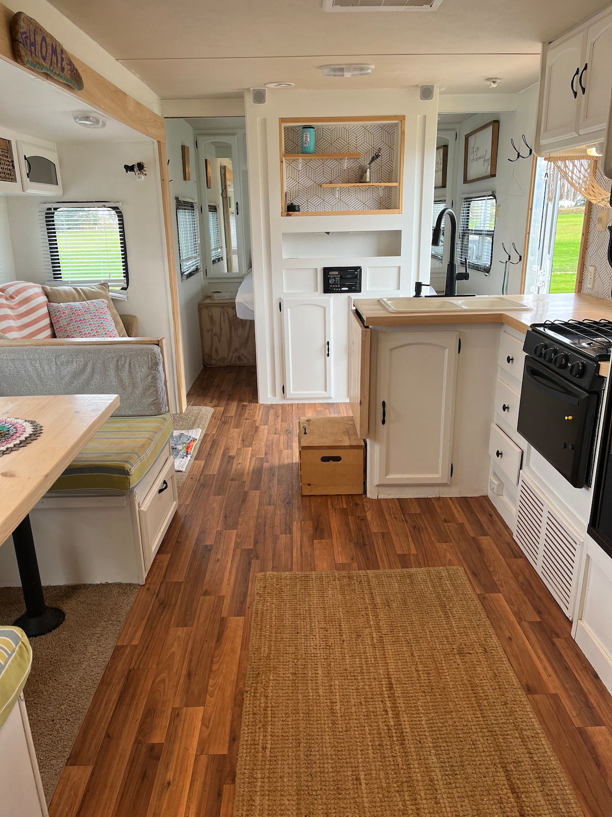 Nasz wesoły i przytulny, przebudowany kamper o długości 27 stóp to Twój mały domek z dala od domu. Jest bardzo wygodny i w pełni wyposażony w w pełni funkcjonalną kuchnię, łazienkę, organiczną pościel, ręczniki i wszystko, czego potrzebujesz na plażę i do zwiedzania wyspy. Jest zaparkowany na naszej nieruchomości obok działającego gospodarstwa (ze stoiskiem, na którym można kupić jajka i wołowinę), z widokiem na ocean i 1 minutę spacerem na plażę z fokami, i wykopać własne małże i małże. Tylko 10 minut do Charlottetown, ale bardzo spokojnie.