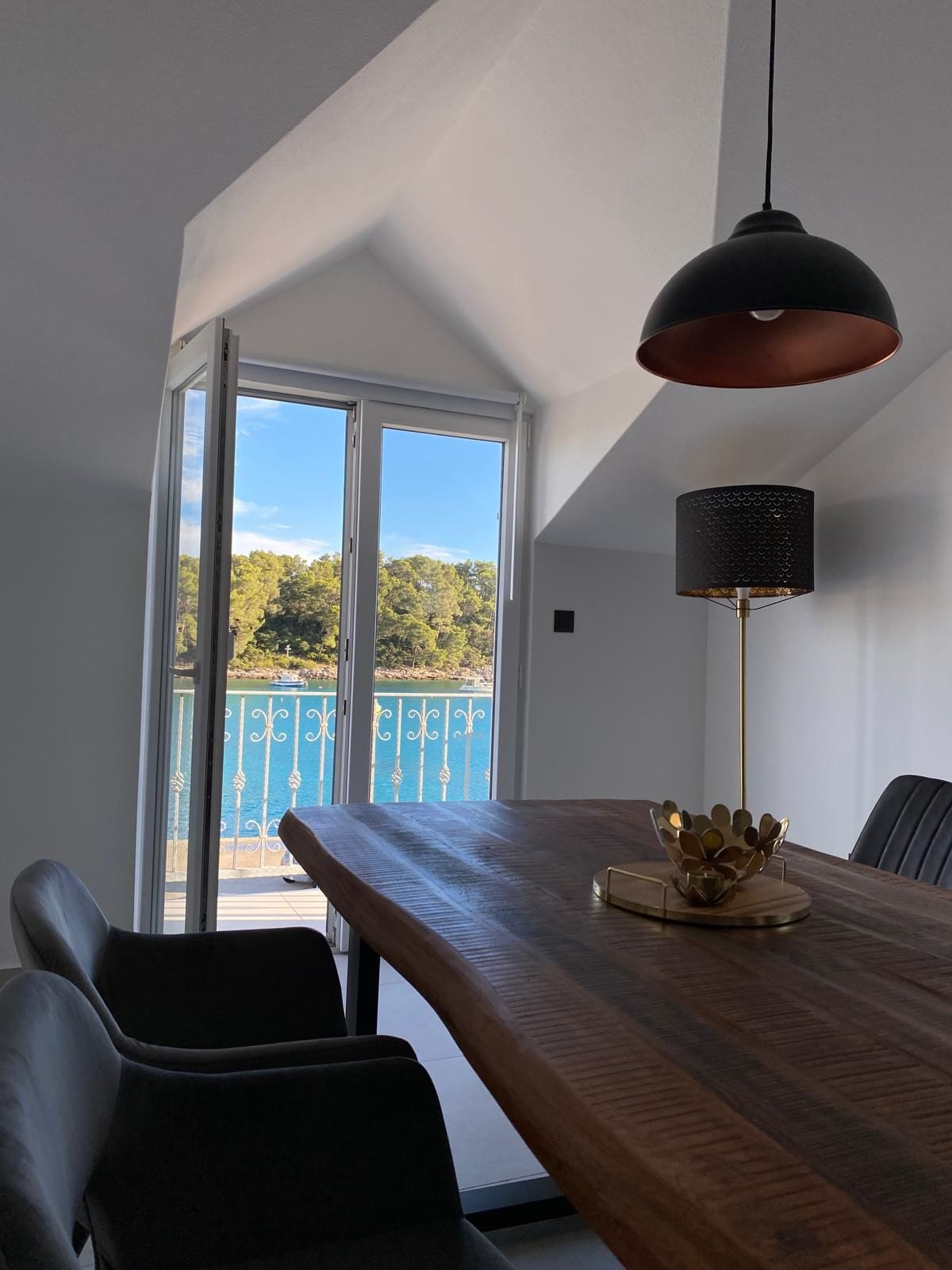Nowoczesny apartament położony zaledwie 50 metrów od morza. Fantastyczny widok na pobliskie wyspy i zapierająca dech w piersiach przyroda zapewniają autentyczne śródziemnomorskie wrażenia. Apartment offers everything you need for a relaxed and idyllic vacation in a quiet tourist village on a southern side of the island of Korčula. Apartament znajduje się na drugim piętrze domu i można do niego wejść po schodach wzdłuż domu.