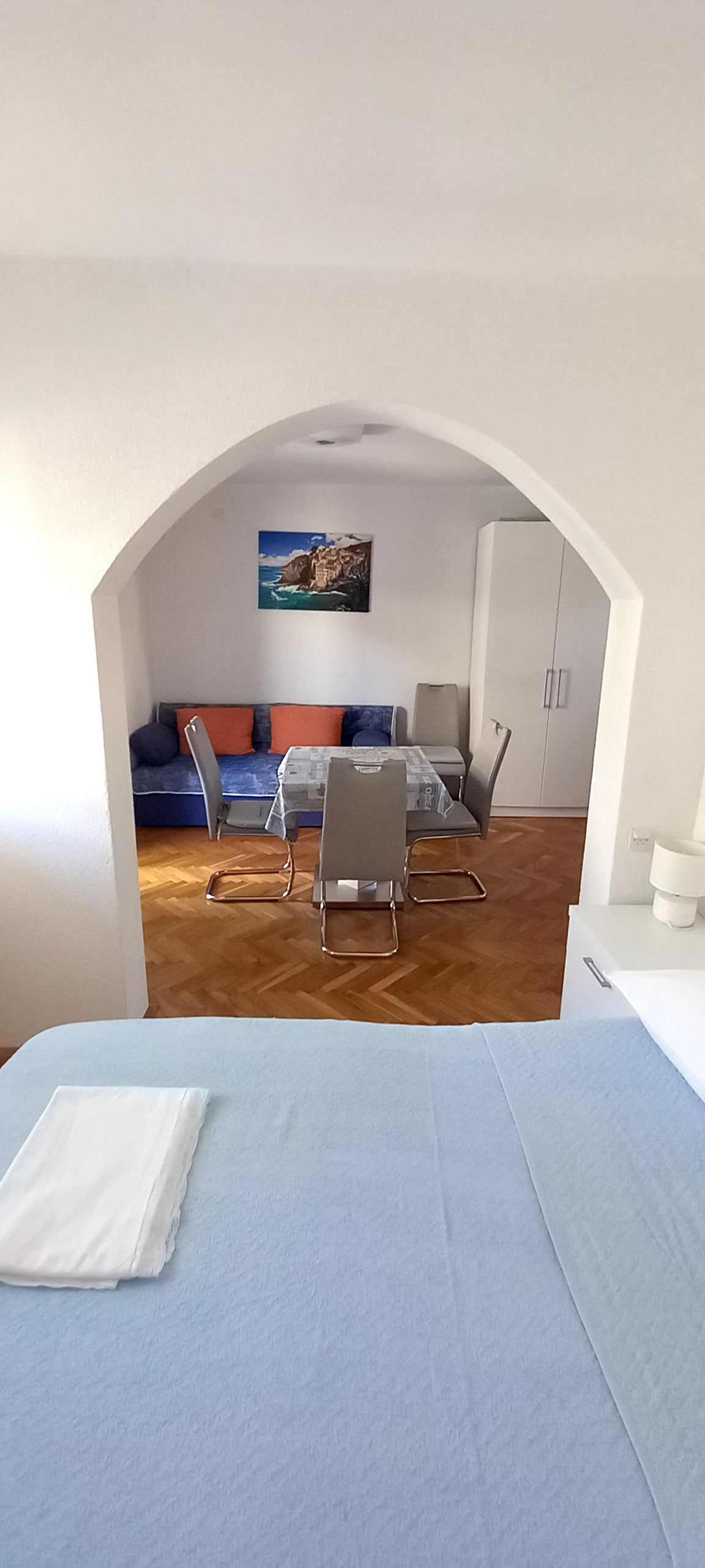 Mieszkanie jest bardzo przestronne i wygodne. Kuchnia jest w pełni wyposażona, z balkonu rozciąga się widok na morze. Jest odpowiedni dla czteroosobowej rodziny.