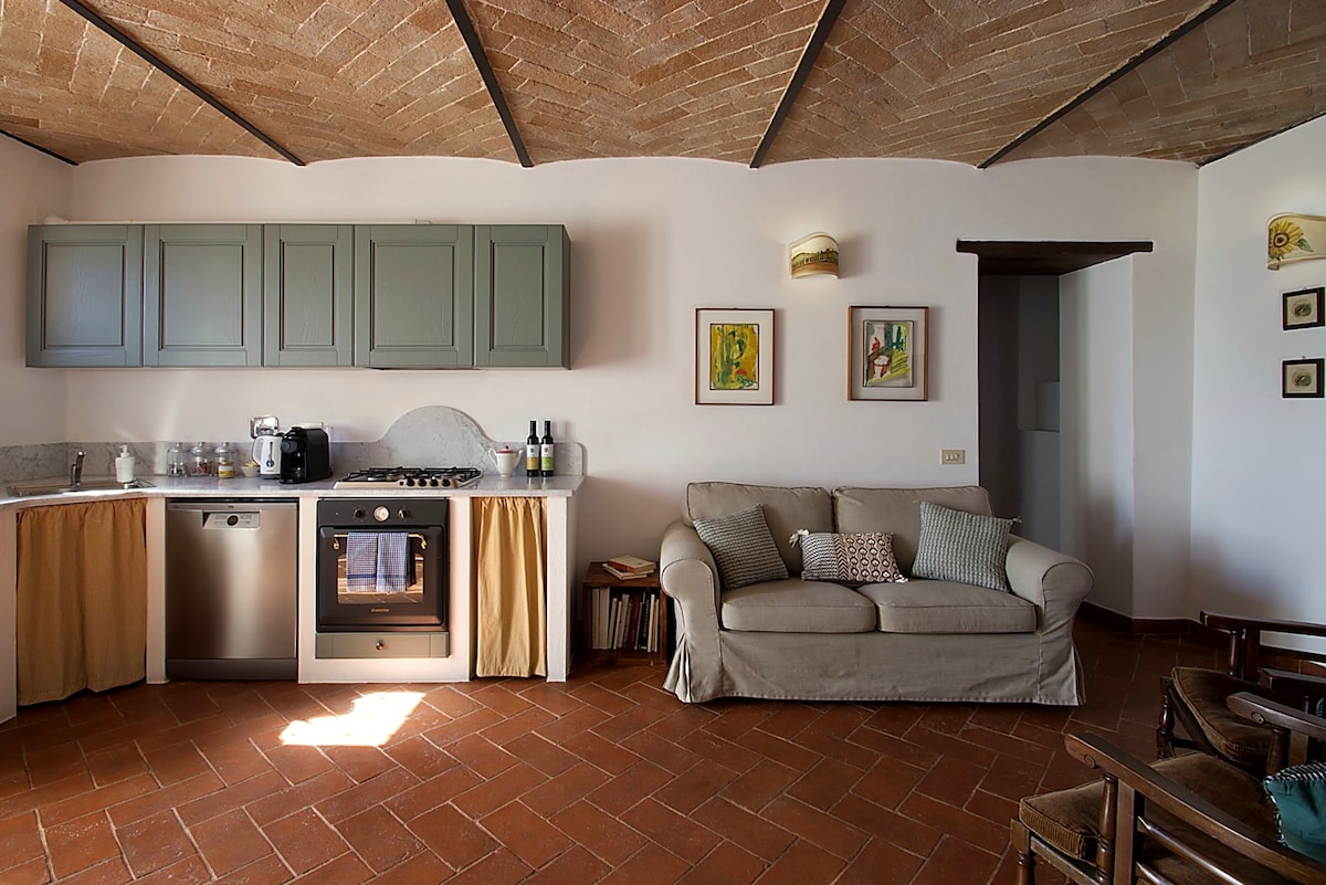 Odkryj Toskanię w pięknie urządzonym apartamencie z 2 sypialniami, 2 łazienkami, wszystkimi udogodnieniami i kominkiem. Witamy w Twoim luksusowym domu w samym sercu Toskanii, gdzie każda chwila będzie nową przygodą. Ten pięknie zaprojektowany i dobrze wyposażony apartament znajduje się w odnowionym domu wiejskim, otoczonym gajami oliwnymi, winnicami i wzgórzami, oferując Ci najlepsze z włoskiego życia.