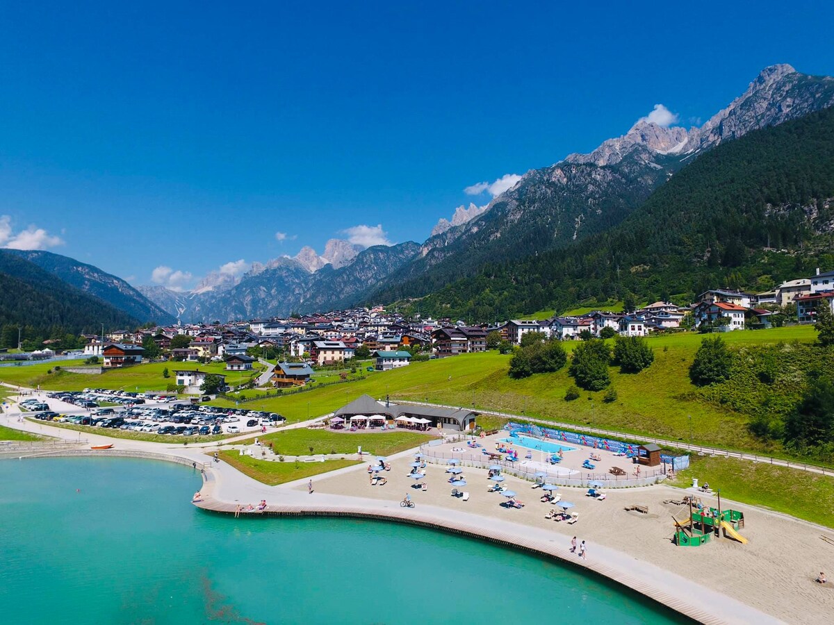 30 minut od Cortina d'Ampezzo i jeziora Misurina, z którego po 5 km można dotrzeć do niezwykłego Tre Cime di Lavaredo. Zakwaterowanie znajduje się w spokojnym miejscu w odległości spaceru od centrum Auronzo di Cadore. Z mieszkania roztacza się widok na jezioro Santa Caterina i góry uznawane za jedne z najpiękniejszych w Dolomitach. W odległości 50 metrów znajdują się takie usługi jak: restauracja, pizzeria, bar, sklep tytoniowy, sklep spożywczy, fryzjer, pralnia, przystanek autobusowy i parking.
