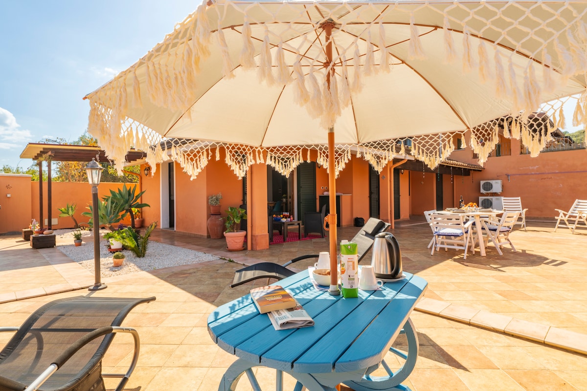 Zrelaksuj się z całą rodziną w domu położonym w dużym prywatnym ogrodzie w centrum Cossoine (SS), około półtorej godziny od północno-zachodniego wybrzeża wyspy. Niezależny i klimatyzowany, wyposażony w salon - kuchnię, łazienkę, sypialnię dwuosobową, pralnię, miejsce na zewnątrz z grillem na letnie grille. Bezpłatna wypożyczalnia rowerów górskich i wypożyczalnia samochodów elektrycznych są dostępne po dokonaniu rezerwacji.