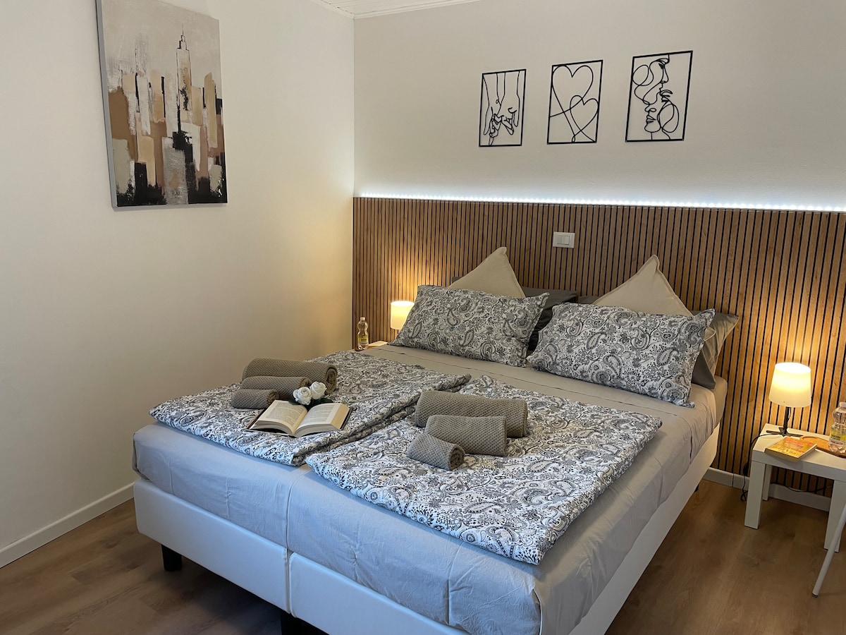 Apartament 3 minuty spacerem od Fiera i Policlinico z małym ogrodem, wygodnym parkingiem, elegancki i designerski, idealny na pobyty biznesowe lub wydarzenia kulturalne. Położony w zielonej i spokojnej okolicy, gwarantuje relaks i prywatność, a jednocześnie znajduje się zaledwie kilka minut spacerem od centrum miasta. Idealne rozwiązanie dla profesjonalistów i podróżnych szukających wygody, stylu i funkcjonalności. Ultraszybkie Wi-Fi. Blisko autostrady, dzięki czemu można szybko dojechać do innych miast.