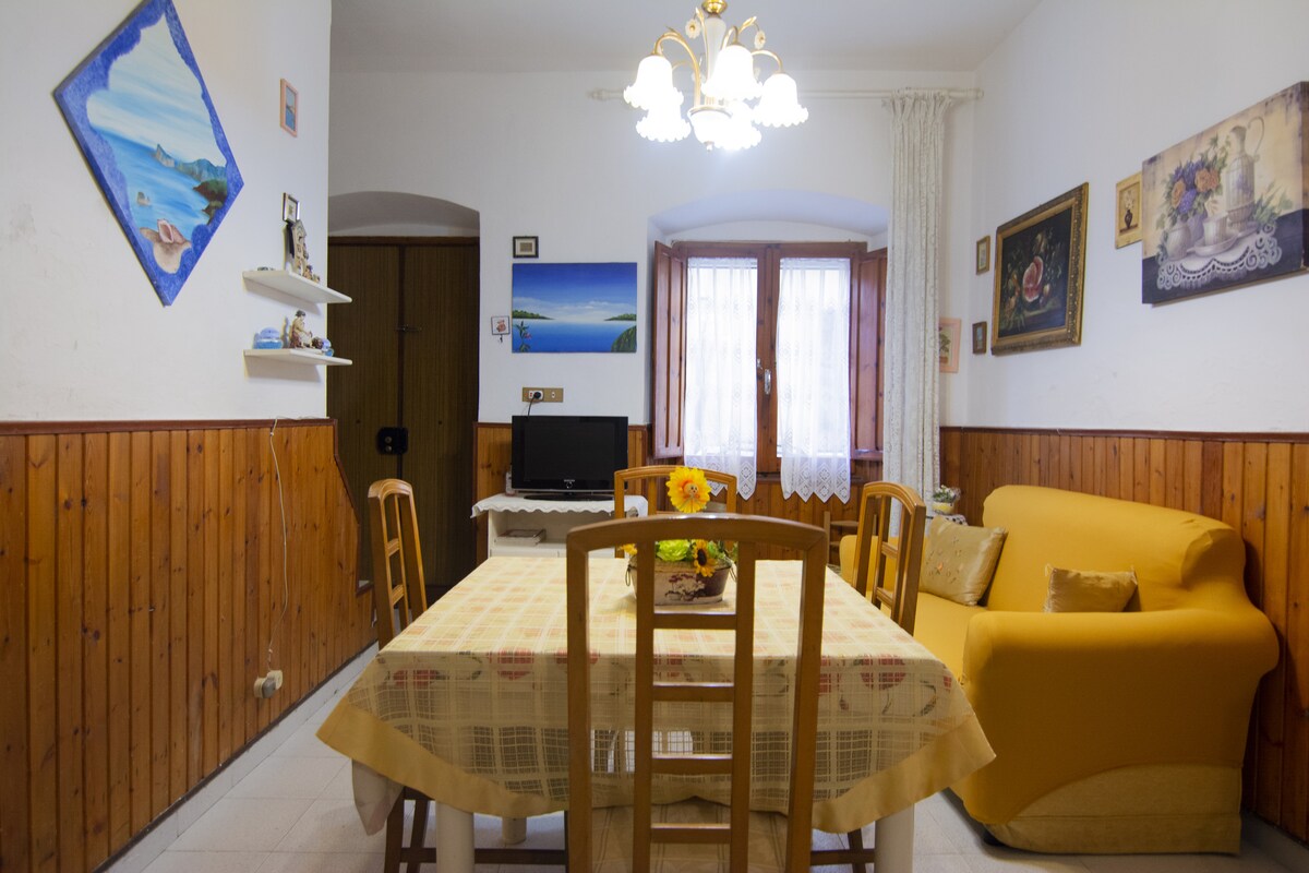 Apartament "La Terrazza" znajduje się zaledwie kilka kroków od pięknego morza Calasetta (około 200 metrów od plaż "Sottotorre" i "Scoglietti") oraz w pobliżu sklepów, restauracji i innych udogodnień. Jasny i wygodny apartament na pierwszym piętrze zabytkowego domu w samym centrum wioski, z którego roztacza się imponujący widok z dużym i wyposażonym panoramicznym tarasem.