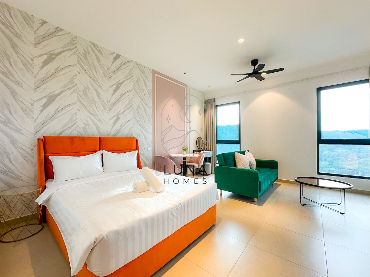 📍Pertama Residency Welcome to my New Bnb - Moonrise City! To studio zostało niedawno urządzone z mnóstwem miłości, łączy współczesny wystrój z nowoczesnymi udogodnieniami, a wszystko to może cieszyć się zwłaszcza chwilą jacuzzi z miłością i 120-calowym ekranem projektora z Netflix. To wyjątkowe miejsce ma swój własny styl, oferuje przytulne, czyste, ciche i orzeźwiające środowisko pobytu dla par. Przyjdź i poznaj nowy pensjonat! Do zobaczenia.