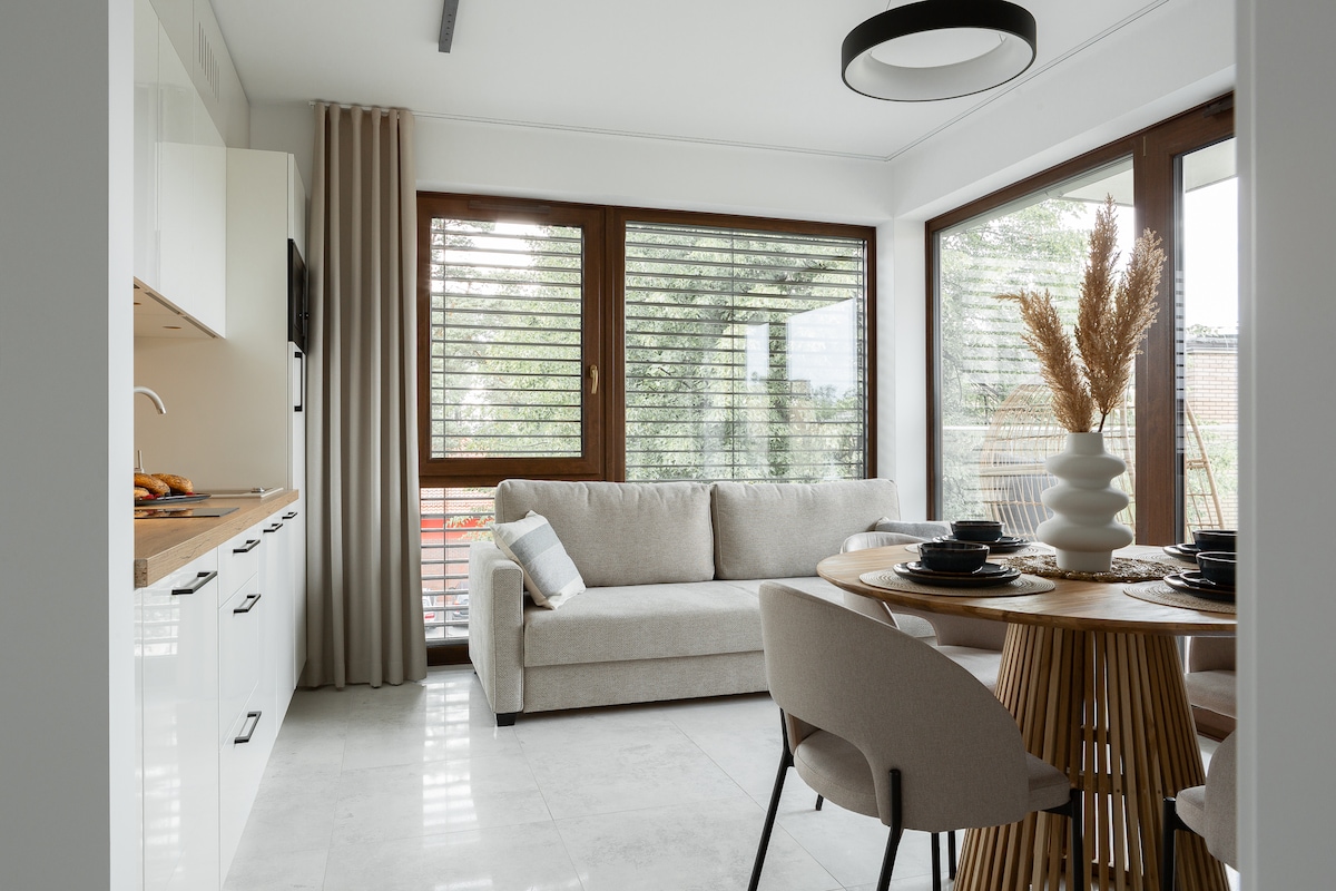 Apartamenty Downtown Apartments to idealne połączenie odpowiedniej hotelowej klasy z funkcjonalnością własnego mieszkania. Przyjemna, śnieżnobiała pościel oraz zestaw dwóch poduszek dla każdego Gościa to standard. Do tego obowiązkowy zestaw kosmetyków składający się z szamponu, dobrze pachnącego żelu, odżywki do włosów oraz balsamu do ciała. Pobyt naszym Gościom umila także zestaw powitalny w postaci pakietu herbat, kawy oraz podstawowych przypraw.