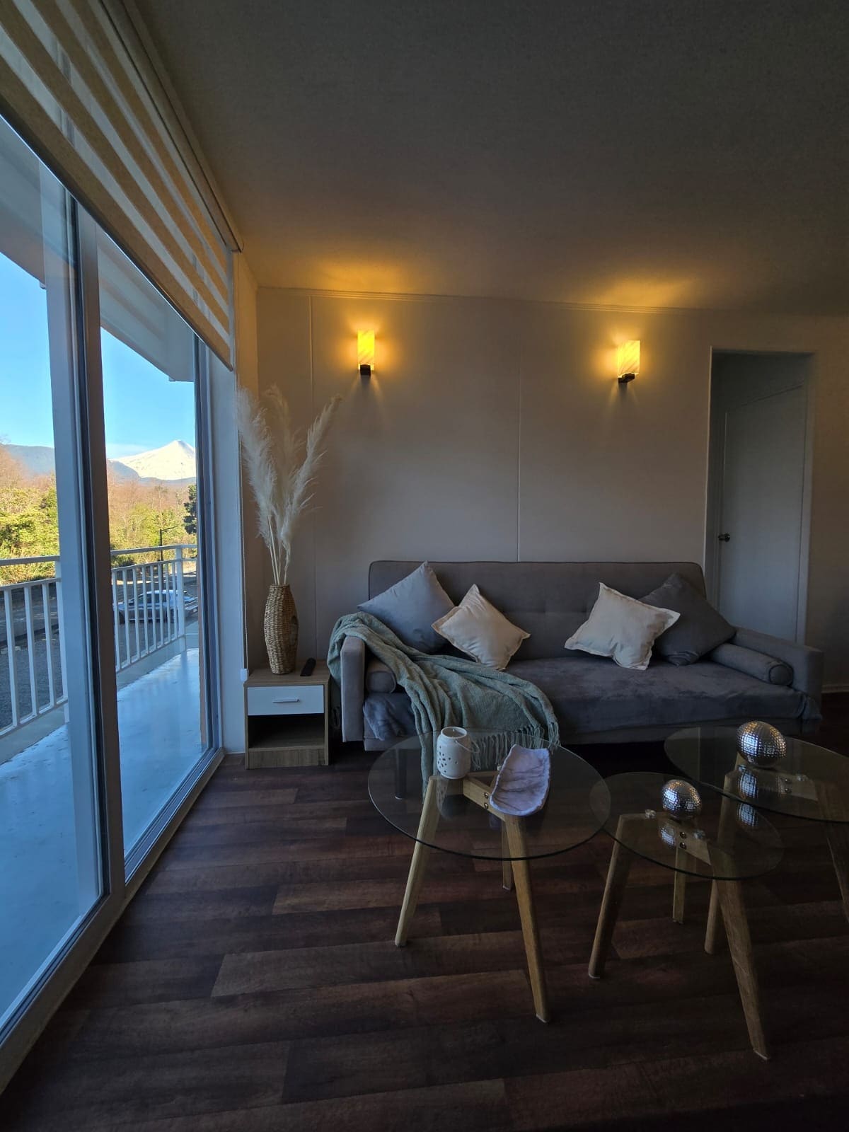 Zrelaksuj się z rodziną w tym cichym i nowoczesnym apartamencie z uprzywilejowanym widokiem na wulkan Villarrica. Ta niezapomniana przestrzeń pozwoli Ci cieszyć się wygodnym pobytem w pobliżu głównych miejsc turystycznych Pucon, takich jak jezioro Caburga, łaźnie termalne, centrum nieba, przełęcz Mahuil Malal. Również w pobliżu z supermarketem, lokalnymi owocami i warzywami, chlebem. 7 min od centrum, kasyna i jeziora Villarrica 30min sky center 20min Caburga lake Kuchenka gazowa w salonie