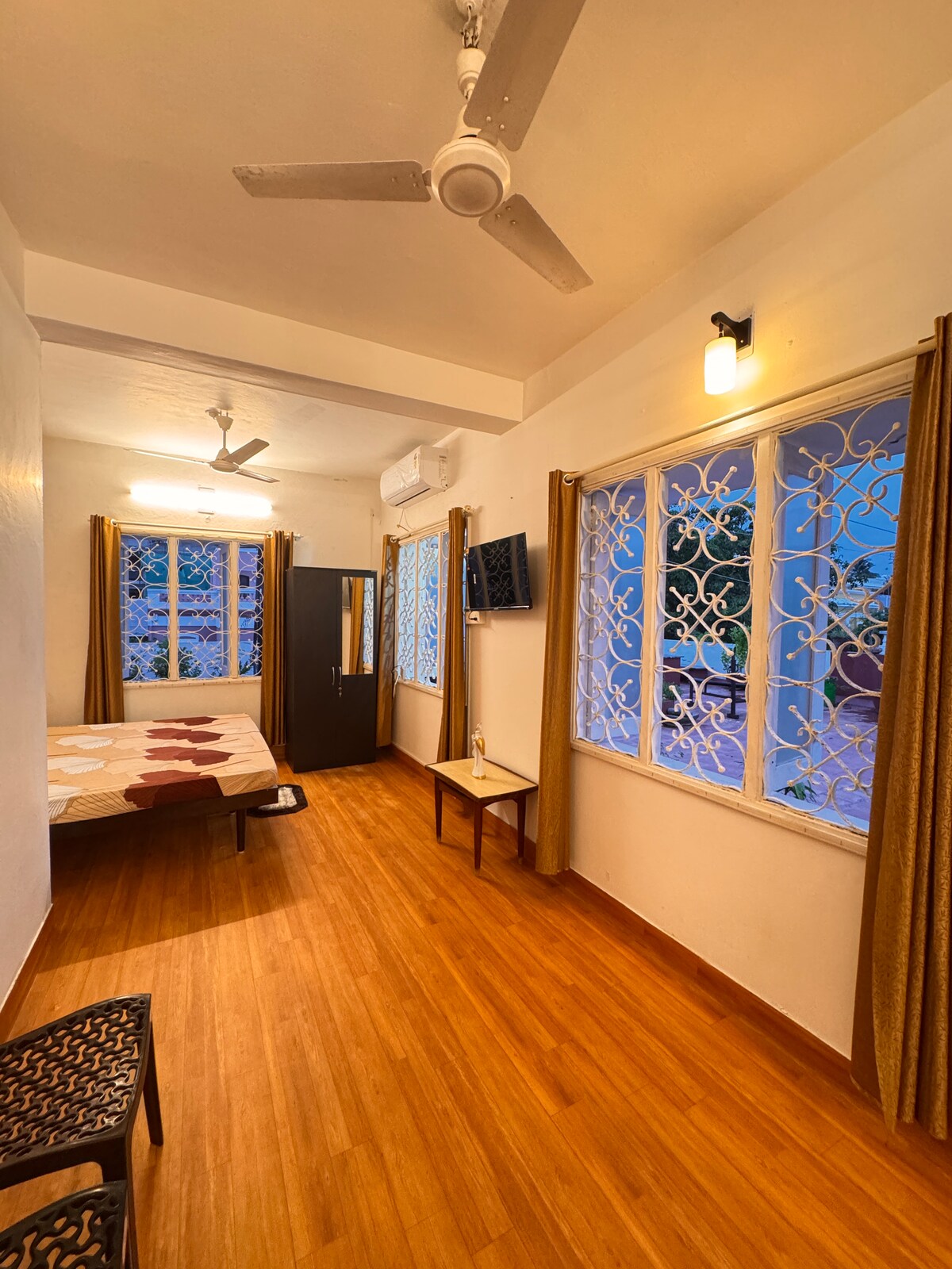 Goście zostaną przydzieleni do parteru lub pierwszego piętra w zależności od dostępności. Fajne i komfortowe mieszkanie z dwiema sypialniami emanuje prawdziwą, miejską atmosferą. Podana cena dotyczy jednego gościa, w polu gościa zaznacz liczbę gości, aby uzyskać dokładną cenę dla Twojej grupy. Nieruchomość jest idealna dla rodzin, wygodnie mieści od czterech do sześciu osób i znajduje się zaledwie dwie przecznice od słynnej świątyni i fortu Omkareshwara. Ciesz się komfortowym pobytem w pobliżu wszystkich głównych miejsc turystycznych.