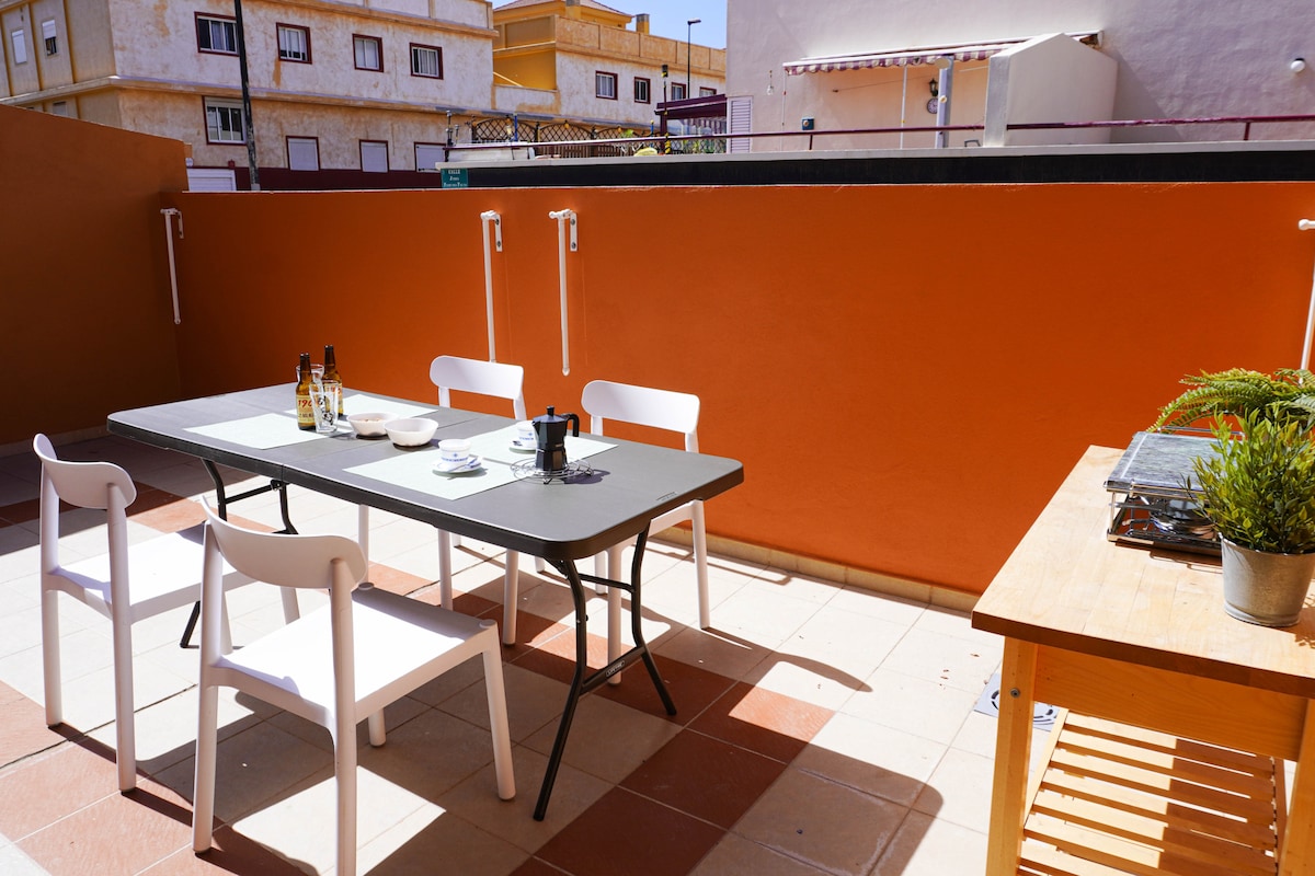 W pełni wyposażony apartament z tarasem o powierzchni 30 m2 z jadalnią na świeżym powietrzu, hamakami i basenem, położony tuż przy plaży. W wiosce rybackiej z supermarketami, apteką, przychodnią, salonem fryzjerskim, placem zabaw, restauracjami itp. Spokojne miejsce na odpoczynek, opalanie i lekturę. Idealne dla par i rodzin z dziećmi. Zajęcia: nurkowanie, kitesurfing, wędrówki (Malpaís de Güímar), bieganie, tenis stołowy, jazda na rowerze, pływanie i spacery po plaży.
