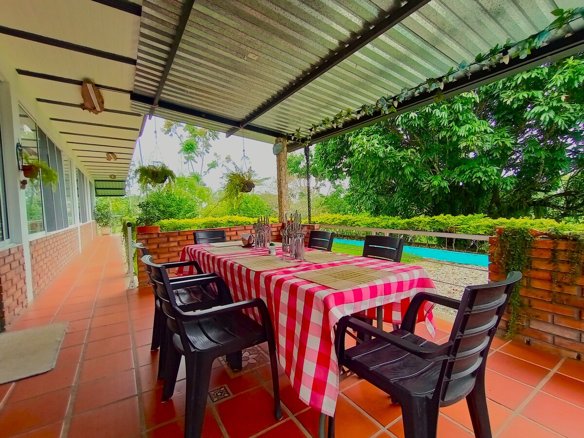 Casa Campestre z dużymi terenami zielonymi, klimatyzacją, kuchnią, grillem, basenem, widokiem PTAKÓW, znajduje się w sektorze turystycznym, przyjemny i komfortowy pobyt.