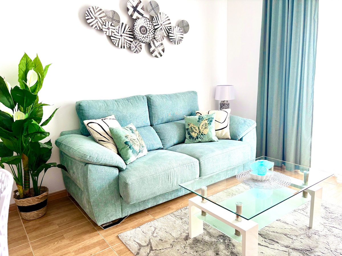 Apartament przy samej plaży z pięknym widokiem na morze. Z wspólnym basenem, z którego goście mogą korzystać bezpłatnie w sezonie letnim Oddzielna sypialnia, salon z podwójną rozkładaną sofą i w pełni wyposażona kuchnia. W centrum Fuengirola, 200 metrów od przystanku kolejowego, skąd można dojechać na lotnisko i do centrum Malagi. Dworzec autobusowy w odległości 150 m. Szybkie Wi-Fi i telewizor Smart TV 55" Bezpłatne miejsce parkingowe na parkingu strzeżonym przez całą dobę przed budynkiem apartamentu.