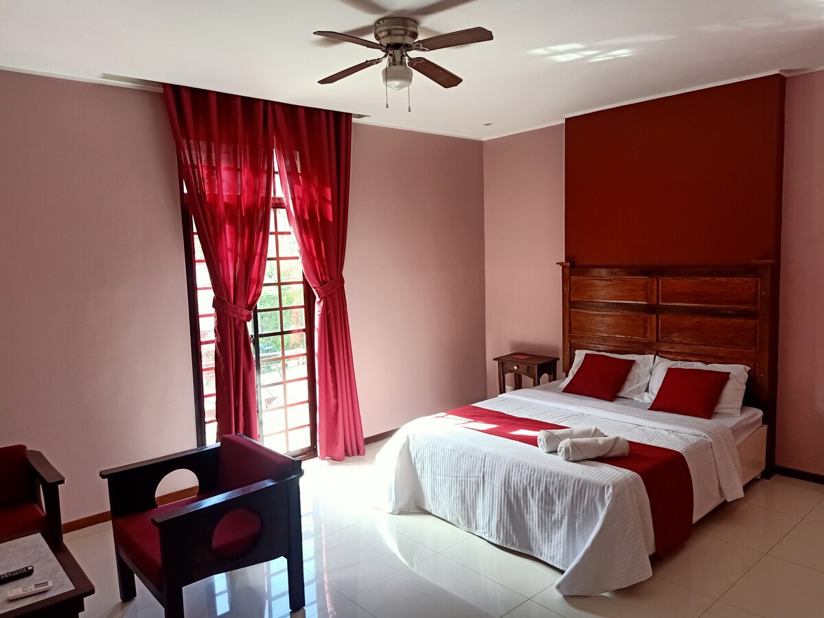 Ideal for travelers seeking ample space, this room features a King-sized bed, air conditioning, a 32" TV, safe box for your valuables, and a serene French-style terrace. Enjoy complete bath amenities, a mini refrigerator, and an unforgettable stay. To top it all, everything comes with a FREE BREAKFAST!