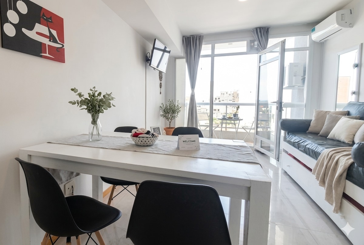 To nowe mieszkanie z niezbędnymi udogodnieniami, które zapewnią wspaniały pobyt. W samym sercu dzielnicy handlowej i gastronomicznej, kilka metrów od centralnej plaży. Spędź kilka spokojnych dni, podziwiając widok na ocean i miasto. Cichy budynek. Łóżko: dwa łóżka piętrowe i dwa łóżka pojedyncze. Ogrzewanie grzejnikowe. W pełni wyposażona kuchnia. Pełna pościel, ręczniki i ręczniki dla każdego gościa. Palenie dozwolone jest tylko na przestronnym balkonie. Powitalna przerwa na kawę
