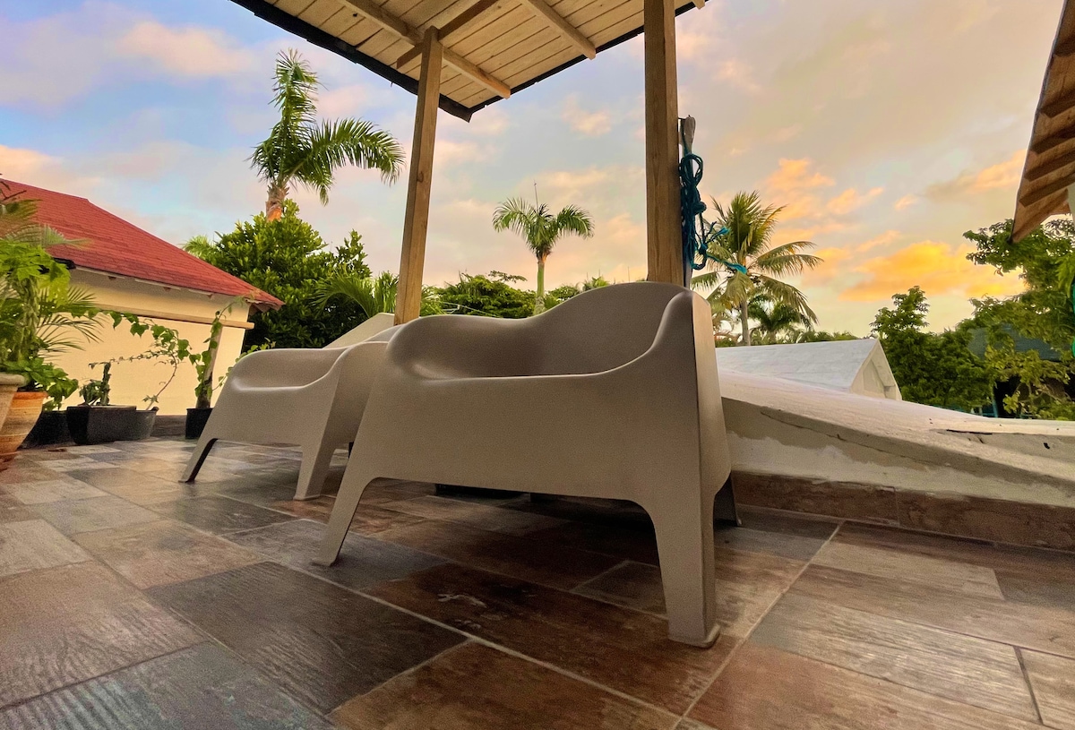 W centrum Cabarete i zaledwie 2 minuty spacerem od plaży. Oferujemy proste i wygodne małe poddasze z salonem/jadalnią/kuchnią i antresolą z łóżkiem i biurkiem. Idealny dla osób, które lubią sporty wodne lub pracują na odległość, dla samotnych lub par.