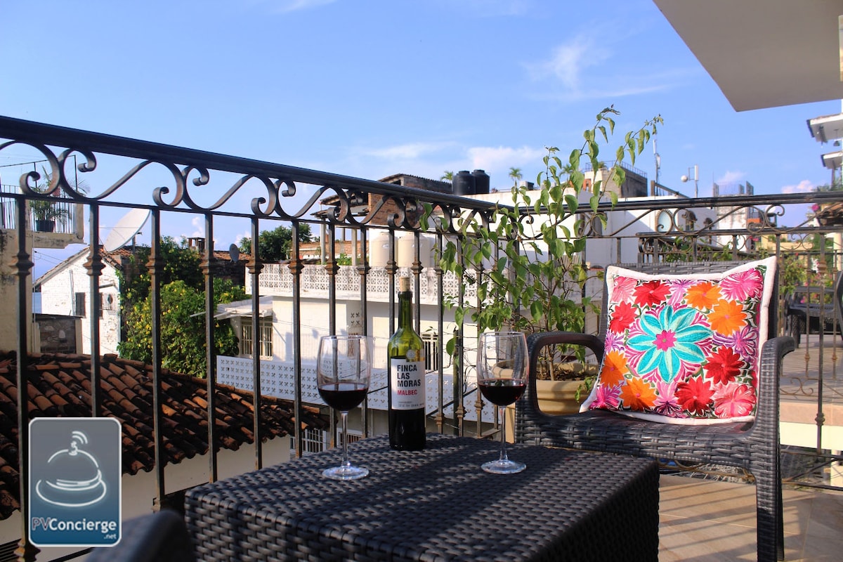 Ten piękny narożny apartament ma autentyczny meksykański klimat, zapewniając wspaniałe widoki zarówno na Zatokę Banderas, jak i na Zona Romantica! Wspaniałe zachody słońca będą nocną przyjemnością, którą można podziwiać z dużego balkonu! Krótki, 5-minutowy spacer do plaż, restauracji i nocnego życia Puerto Vallarta. Położony w dzielnicy Amapas/Zona Romantica, można wybrać się na krótki spacer do plaży Los Muertos i przystani. Tak blisko wszystkich udogodnień, ale na tyle daleko, aby cieszyć się odrobiną spokoju.