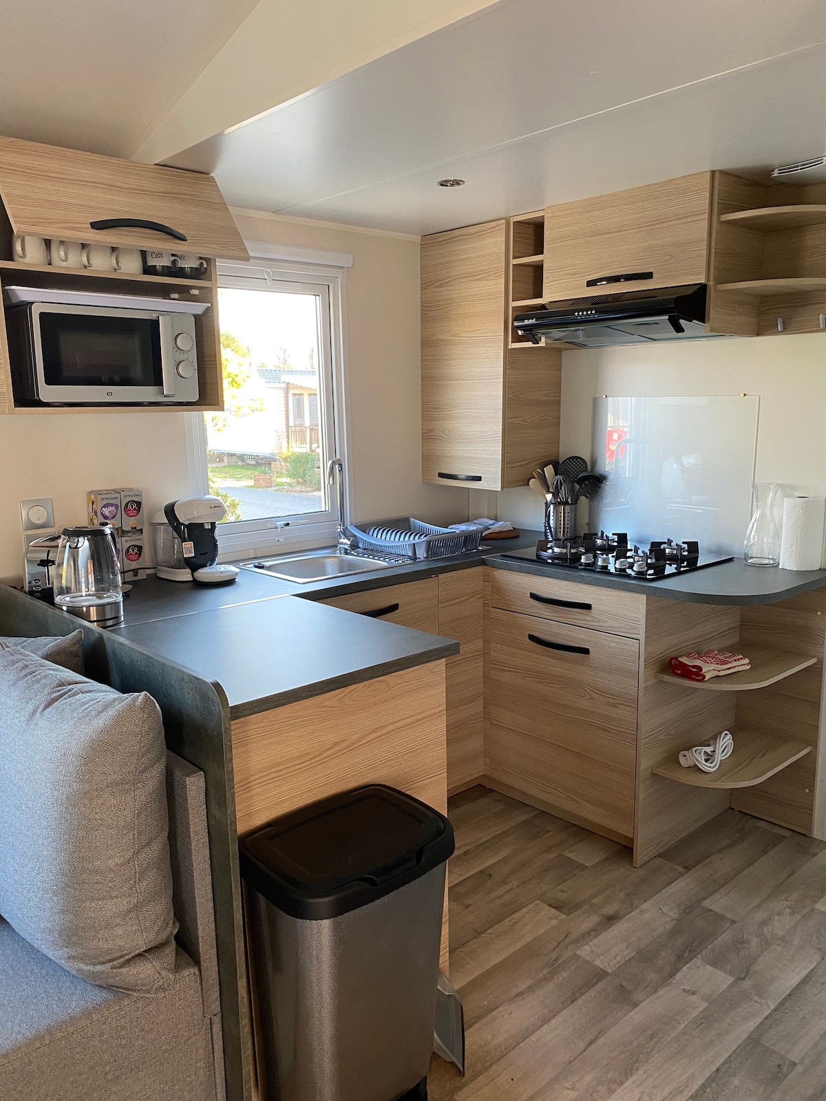 Nowy mobilny dom o powierzchni 35 m2 rok 2023 na 4-gwiazdkowym kempingu. Wspaniały widok na morze, plaża na 100 m. Zakwaterowanie wyposażone we wszystkie udogodnienia. Pościel i ręczniki w opcji. Ekspres do kawy Tassimo. Podgrzewany basen dostępny bezpłatnie z basenem dla dzieci. Restauracja dostępna na miejscu. Dostępny plac zabaw dla dzieci i zajęcia. Sklep spożywczy na miejscu. Nowa pergola zainstalowana w 2024 roku Piłki Petanque