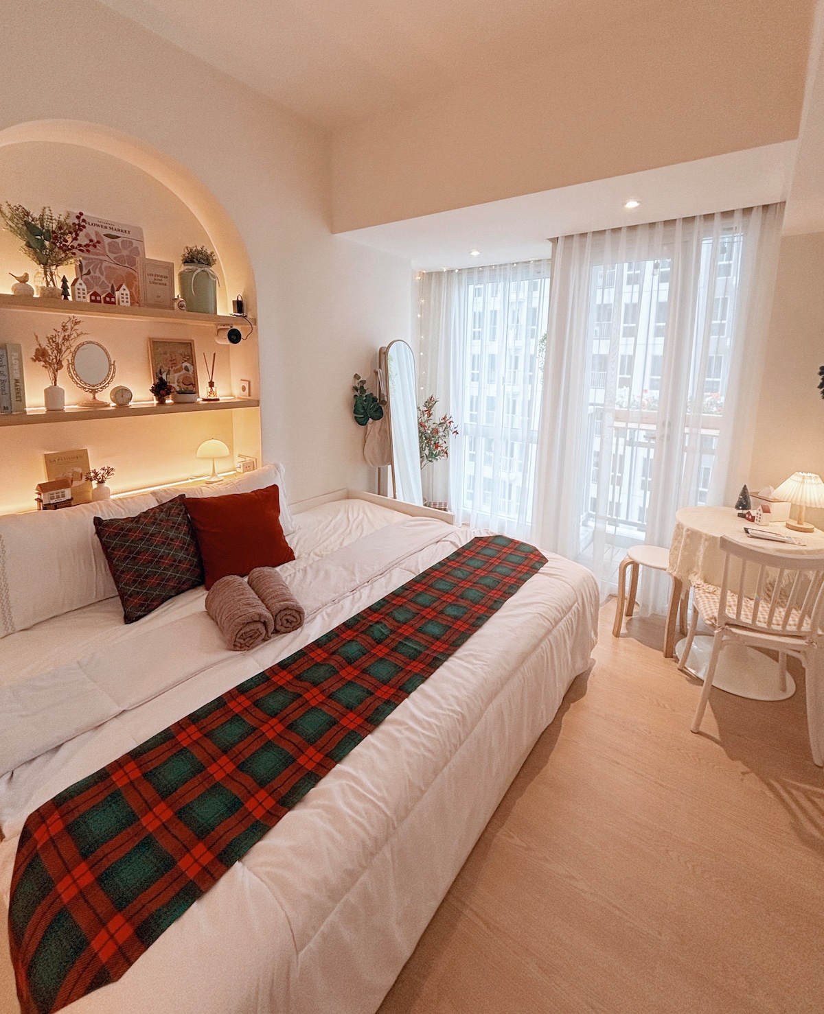 Moje miejsce to studio o powierzchni około 20 m2, w tym łazienka i mały balkon. Jest niestandardowa szafka do przygotowania kuchni, przechowywania odzieży. W łazience jest prysznic z ciepłą wodą. Wewnątrz jest telewizor 42-calowy, a Netflix jest zawsze włączony, możesz oglądać programy, korzystając z profilu gościa. Lokal znajduje się na 8 piętrze. W samym apartamencie znajduje się wiele udogodnień, takich jak klub, basen i siłownia. Jedzenie w piwnicy, targowisko lub minimarket, aby zaspokoić codzienne potrzeby.