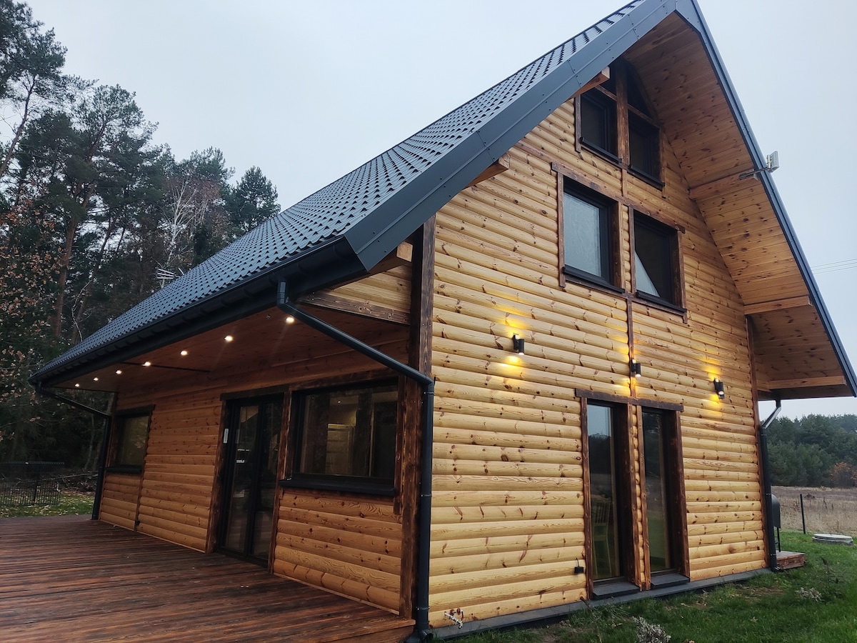 Escape to a private cabin by the river located ca. 50mins from Warsaw or 35mins from Modlin Airport With 2 bedrooms & sleeping space for max 5, it's perfect for families or friends. Enjoy a sunny, secluded plot surrounded by nature. Gather around the fire pit under starry skies, explore trails, swim or fish in the nearby rivers/lakes. Don’t wait, book now for an unforgettable retreat Only 14 mins to Serock or 11 mins to Pułtusk there is more than enough fun & activities to be had within reach.