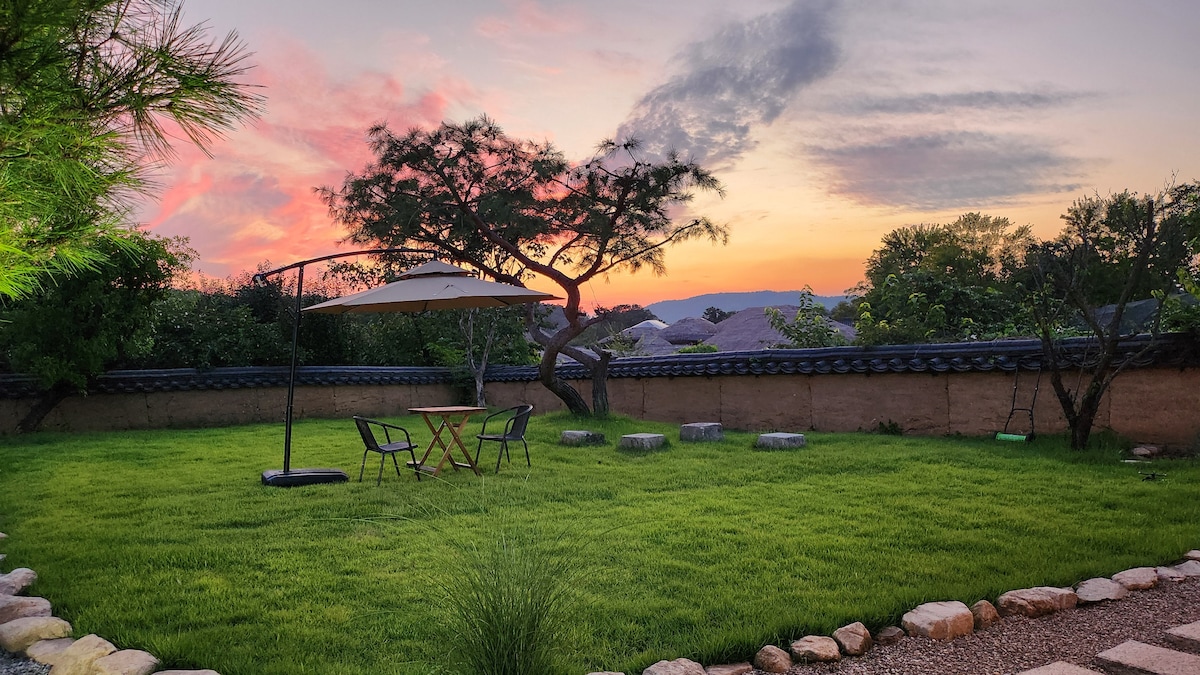 Stay Ruga, kwatery w Andong, hanok, bajkowa kawiarnia w stylu europejskim, dziedziniec, grill, jacuzzi, wioska Hahoe, świątynia Byungsan