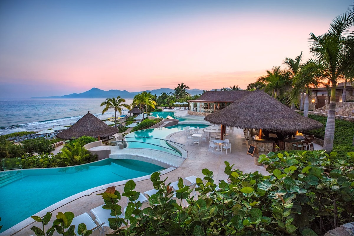 Luksusowe nieruchomości nad oceanem, w pełni umeblowane i akcesoria, dostępne do wynajęcia przez cały rok. Idealne miejsce na rodzinne wakacje, wycieczkę z przyjaciółmi lub szybki romantyczny wypad. Ten wyjątkowy apartament położony jest w Bahía de Banderas, 45 minut jazdy od lotniska Puerto Vallarta i zaledwie kilka minut jazdy od hotelu Four Seasons w Punta Mita. Ten piękny Condo obejmuje 2 prywatne sypialnie; jedna z łóżkiem typu king-size, a druga z łóżkiem typu queen, telewizor z płaskim ekranem pokój z wykwintnym