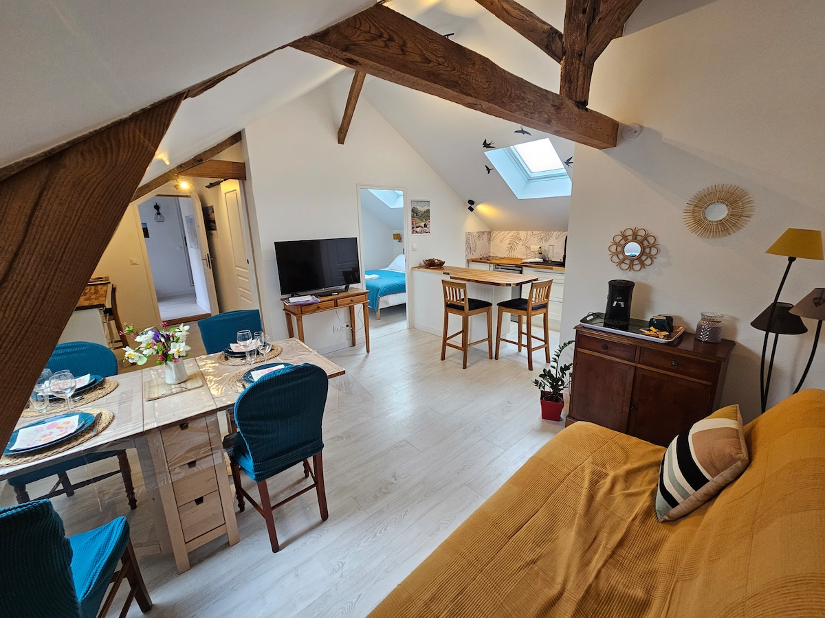 To eleganckie miejsce na pobyt jest idealne dla par. Znajduje się w pobliżu centrum miasta, w odległości spaceru, w pobliżu jeziora, w odległości 1 km od sklepów, w pobliżu kuracji terminalowej Bagnole de l'Orne, 7 km. Spokojne mieszkanie, bardzo dobrze izolowane, na parterze, mały taras otoczony różami. Zapewniona jest minimalna pościel: poszewki na poduszki, kołdry i materace. W razie potrzeby można dokupić kompletną pościel i ręczniki za 15 euro.
