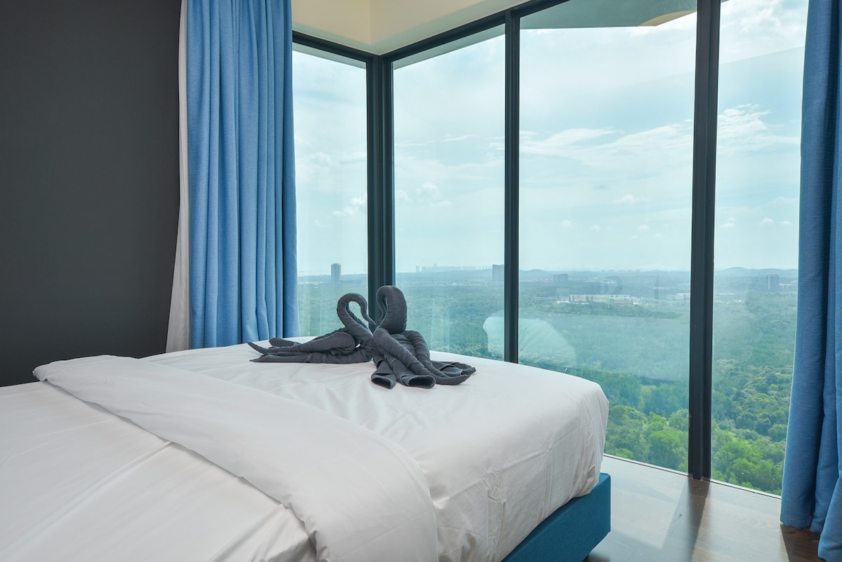 Witamy w PineTree Marina Resort, jednym z najbardziej luksusowych obiektów w Puteri Harbour, Nasz przytulny dom znajduje się zaledwie 5 minut jazdy od LEGOLANDU, oferując wspaniały widok na morze z wysokiego piętra, z doskonałą wentylacją i atmosferą. Możesz nawet cieszyć się wschodem słońca bezpośrednio z apartamentu! Ta nowoczesna przestrzeń posiada 2 sypialnie i 2 łazienki, każda sypialnia z łóżkiem typu king-size i prywatnym balkonem. Wszystko jest starannie przygotowane, aby zapewnić Ci wygodę i przyjemność. Przyjedź i przekonaj się na własne oczy!