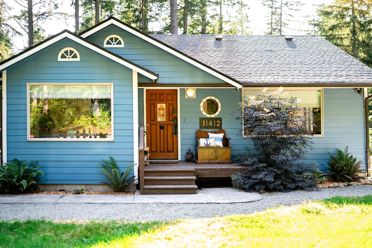 Majestatyczne zachody słońca nad South Puget Sound czekają na Ciebie w naszym domu w kształcie litery A w stylu lat 70., który znajduje się na skraju spokojnej zatoki słonowodnej, gdzie bawią się zimorodki, czaple i wydry rzeczne. Nasz dom znajduje się w małej wiejskiej społeczności na południowo-zachodnim wybrzeżu Półwyspu Key, 90 minut od Seattle i 45 minut od Tacoma. Mamy wszystko, czego potrzebujesz, aby odpocząć: dobrze wyposażoną kuchnię, książki i gry planszowe, gramofon i płyty oraz telewizor Smart TV. Dobrze wychowane psy są mile widziane!
