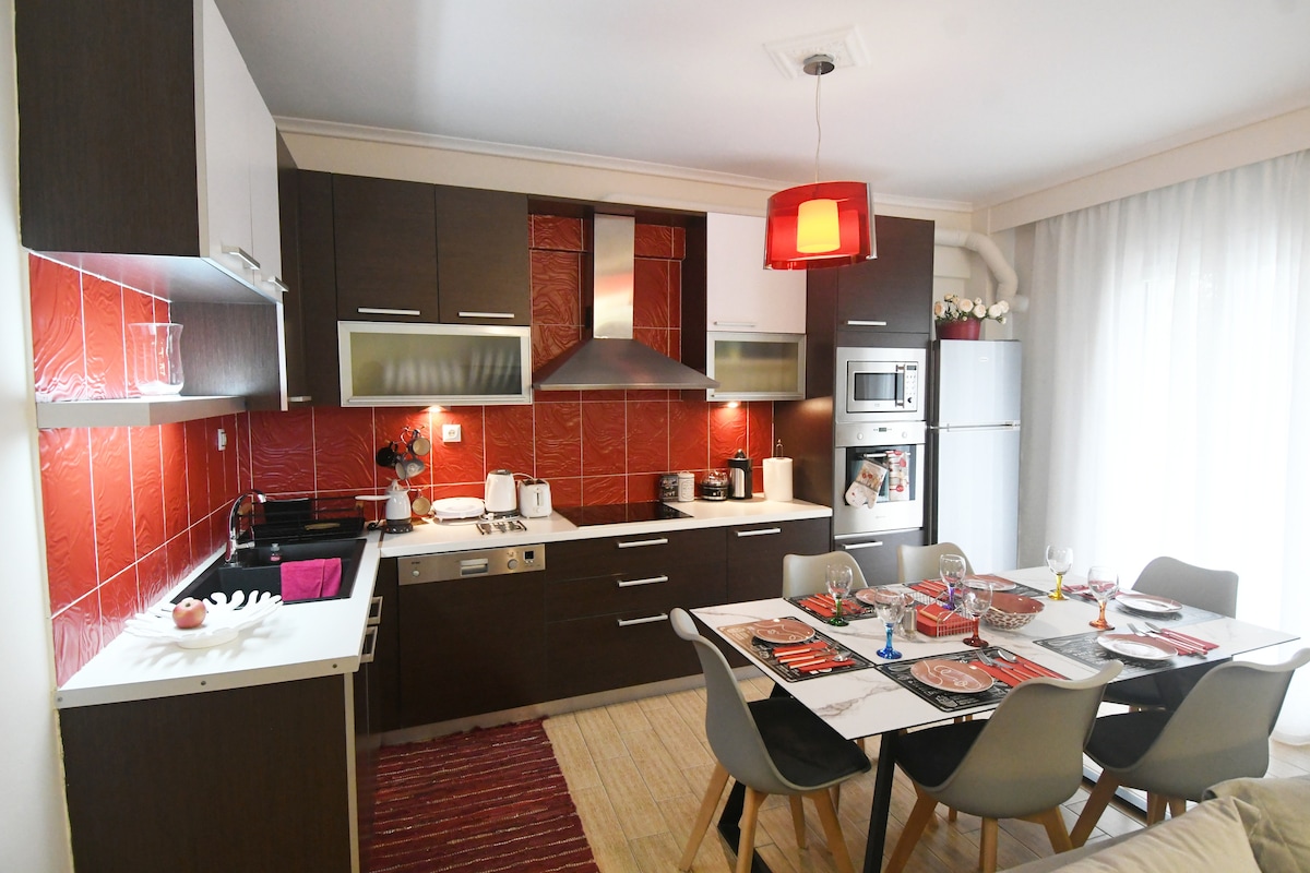 Duży, elegancki, wygodny apartament położony w cichej, centralnej lokalizacji, zaledwie 10' (autobusem) od centrum miasta. Jest profesjonalnie czyszczony i jest idealny dla par, przyjaciół i rodzin. ✔️ ODNOWIONY. (kwiecień 2018) Przestronne/dostępne wszystkie pokoje/ parking uliczny/ balkon z widokiem/ Wi-Fi/ klimatyzacja/gaz ziemny/ gorąca woda 24 godziny na dobę/woda pitna z kranu