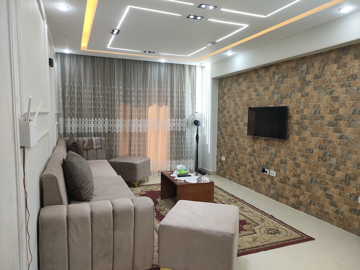An economy option yet cozy, stylish and hygienic. A furnished apartment in Sheikh Zayed city, Egypt where there are no crowds and quality services are available everywhere. The apartment is located in a medium class local residential building only 30 minutes away from Giza Pyramids, the Egyptian Museum and other monuments. It's also surrounded by a lot of marketplaces, shopping malls and close to everything you need.