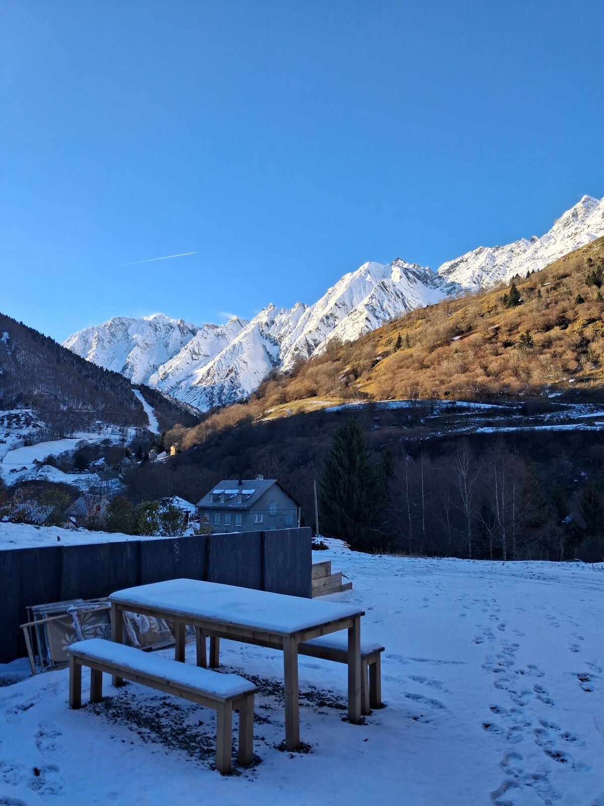 Venez profiter d'une expérience ressourçante au sein de la Grange du Père Émile, nouveau chalet de village, dernière née des Granges Deth Pouey. Vue absolument panoramique de toutes les pièces et du jardin clos, ainsi que du sauna et de la douche extérieure. Dépendance sécurisée pour les vélos et skis. Clim dans toutes les pièces. 2 chambres avec chacune sa sdb. Logement spacieux pour 4 personnes. Lit de camp d'aventurier pour un enfant (5p). Chargeur V.Elec. Prestations de très belle qualité.