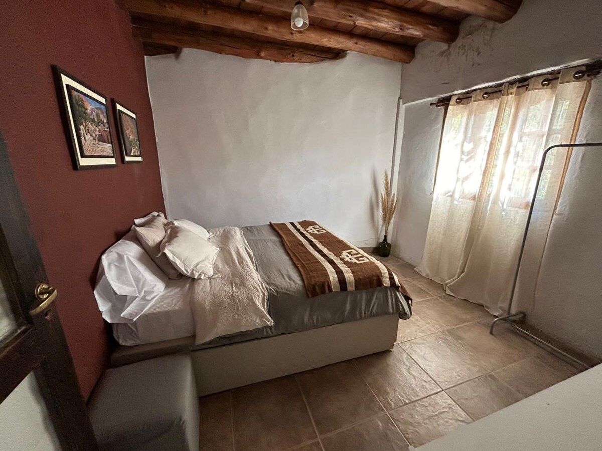 WIEJSKI DOM Z PRYWATNĄ ŁAZIENKĄ położony w samym sercu natury. Wyjaśniamy to, aby podczas oceniania LOKALIZACJI wiedzieć, że jest ona otoczona wzgórzami i znajduje się 800 metrów od centrum. Wyjątkowe widoki na Quebradę. Podwójne łóżko;prześcieradła,ręczniki i koce. Mesa,krzesła i przedmioty do przygotowania śniadania, sejf tylko do ogrzewania, elektryczna pawa, lodówka, zastawa stołowa. Bez parkowania,zadaszenie,nie zamknięte. Wi-Fi. calefaccion. Podwórko i wiejskie krajobrazy Andów: drzewa churqui, wierzby itp.