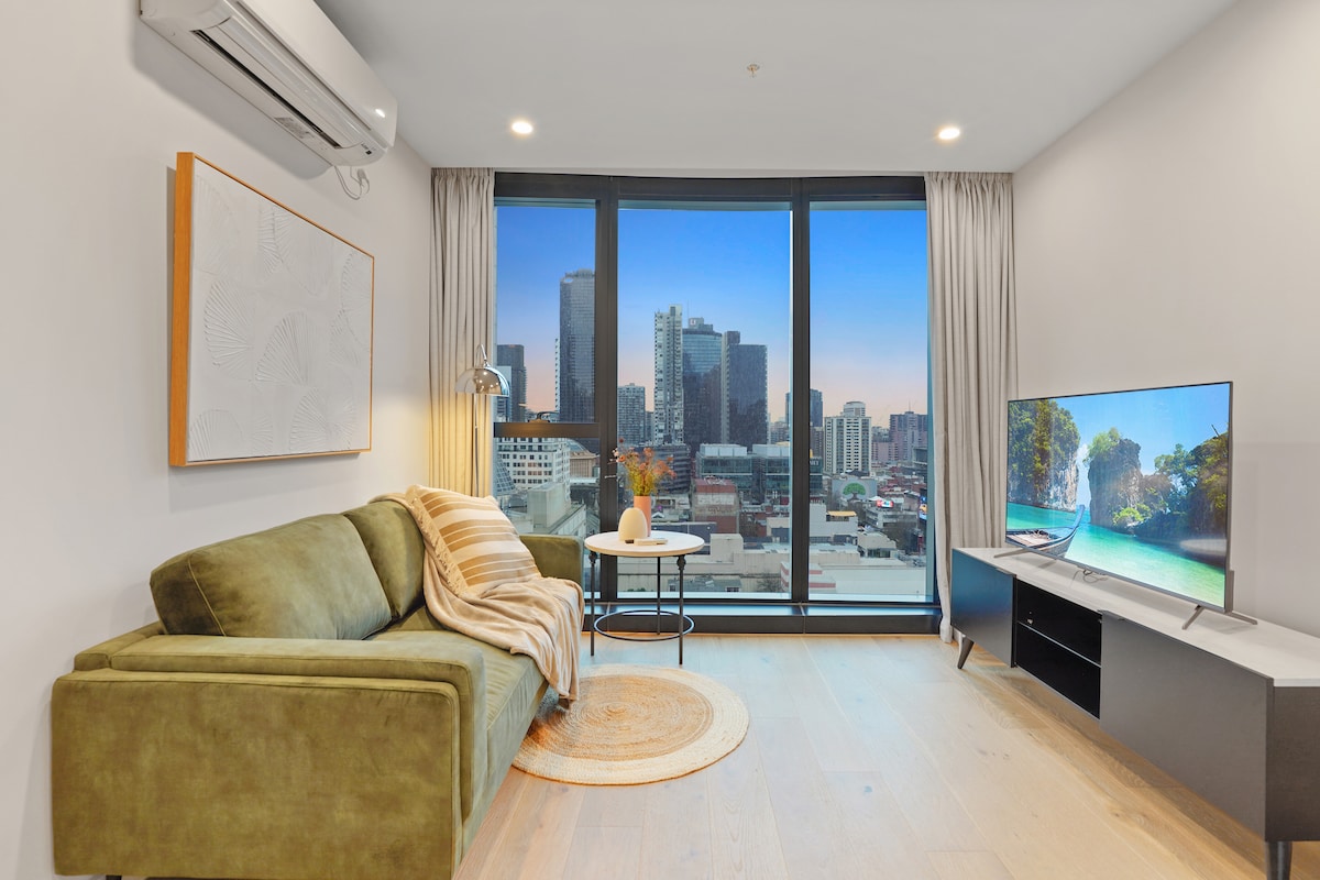 Eleganckie mieszkanie z 1 sypialnią w Melbourne CBD | Wi-Fi i parking