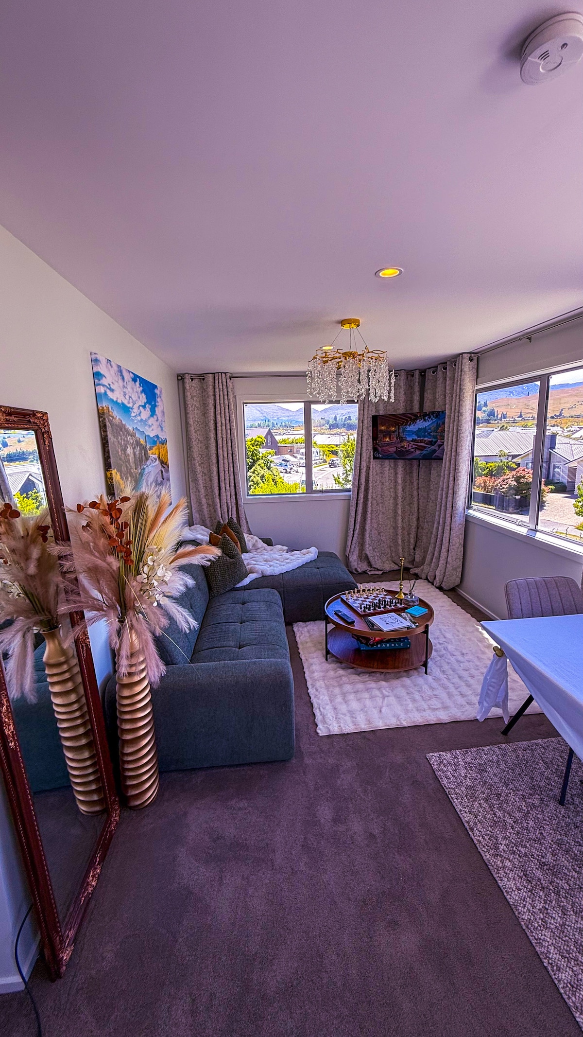 Zapierające dech w piersiach widoki z salonu i sypialni. Ten nowoczesny (nowy 2025) samodzielny apartament z oddzielnym wejściem i w pełni wyposażoną kuchnią oferuje wspaniałe widoki na góry i farmę. Jest ciepło, słonecznie i spokojnie. Zrelaksuj się, odpręż lub zakończ dzień aktywnymi zajęciami na wyciągnięcie ręki. 2 minuty od klubu golfowego Jacks Point, 4 minuty do drogi dojazdowej do pola narciarskiego Remarkables, 10 minut do lotniska i centrum handlowego Frankton. Dostęp do jeziora oraz szlaki spacerowe i turystyczne znajdują się tuż za progiem.