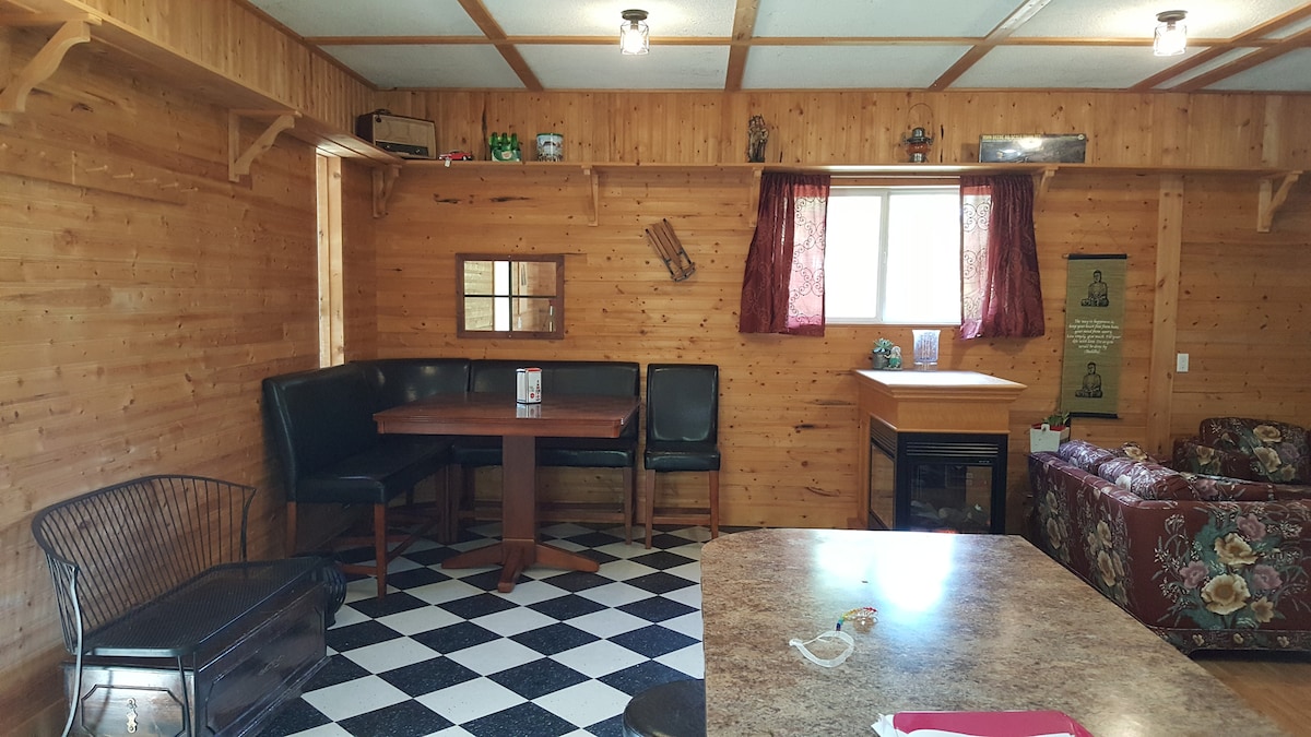 Pokochasz wiejskie otoczenie naszej przytulnej chatki w odległości zaledwie 20 minut od Quesnel. Nasza chatka jest idealna dla rodzin i każdego, kto lubi trochę surowości. Wystrój słonecznika i sosnowe meble sprawią, że poczujesz się mile widziany i zrelaksowany. Możesz zwinąć się w kłębek z książką w bujaku przy ognisku lub zagrać w jedną z gier w szafce. W aneksie kuchennym jest wszystko, czego potrzebujesz! Po prostu weź ze sobą jedzenie i przygotuj się, aby się zrelaksować i cieszyć!